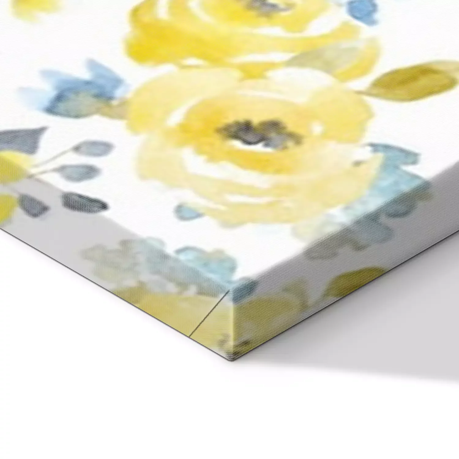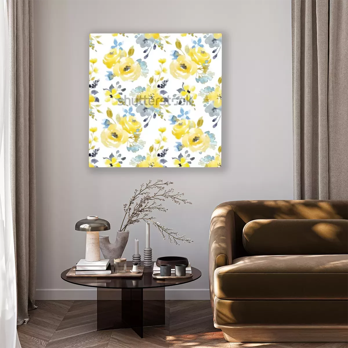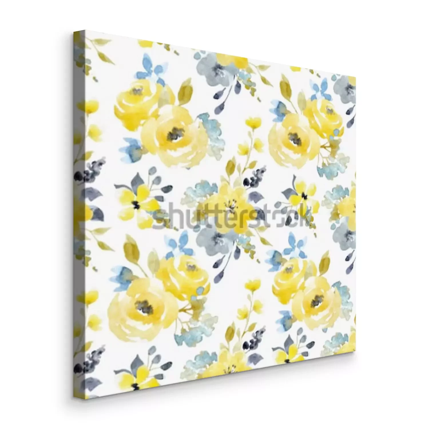 Canvas: Het patroon gele en blauwe abstracte bloemen van de waterverf heldere zomer