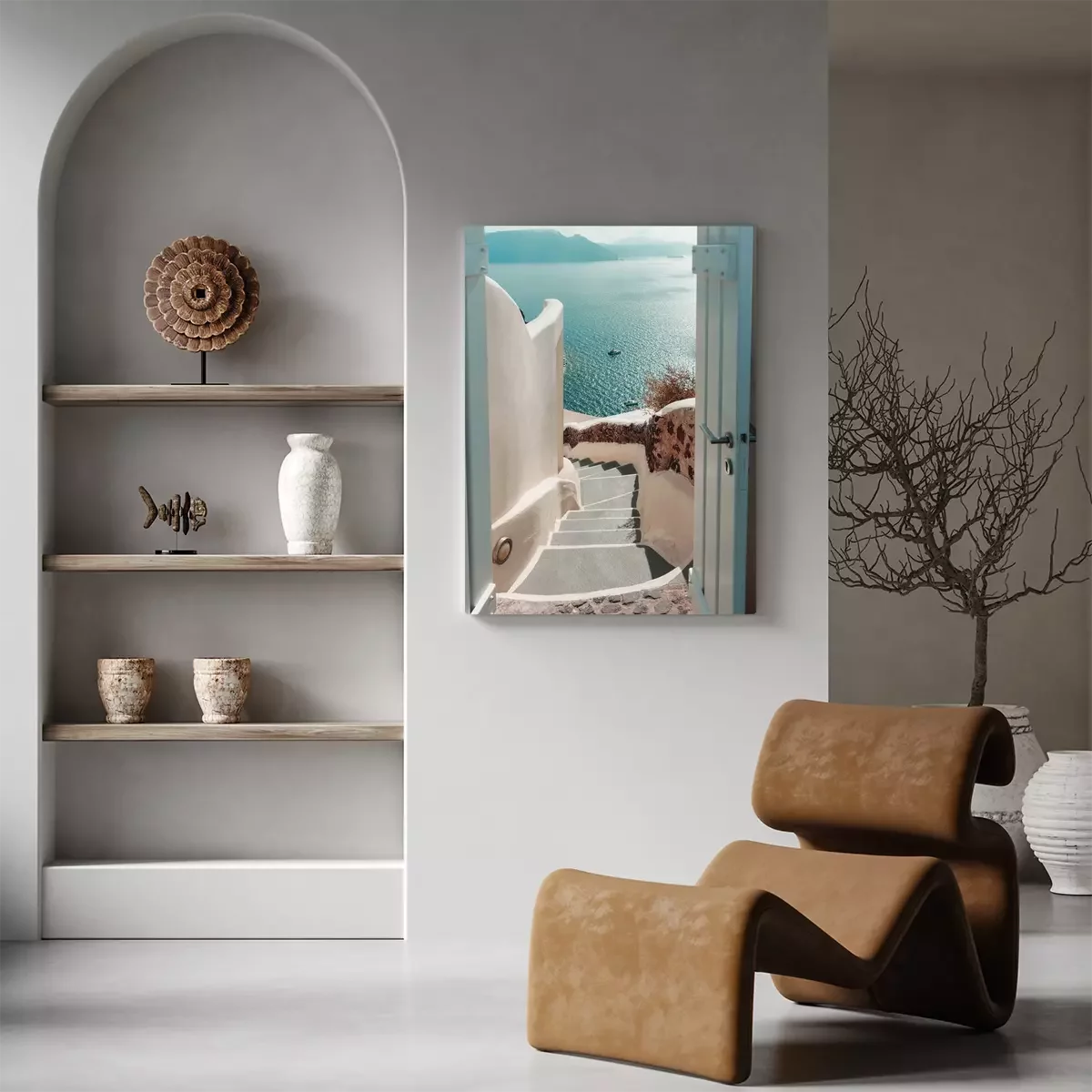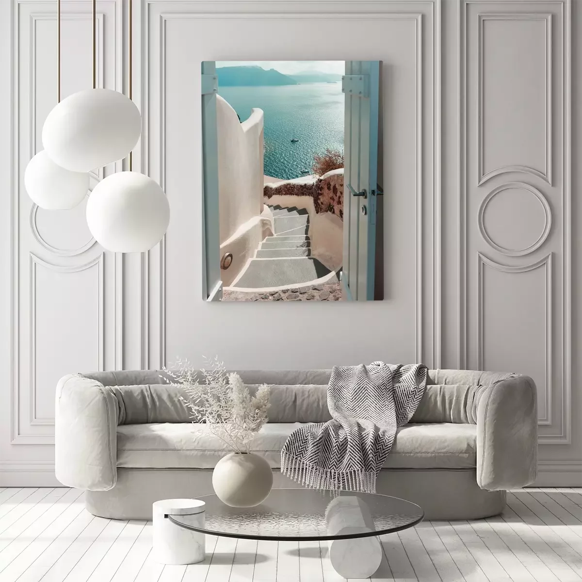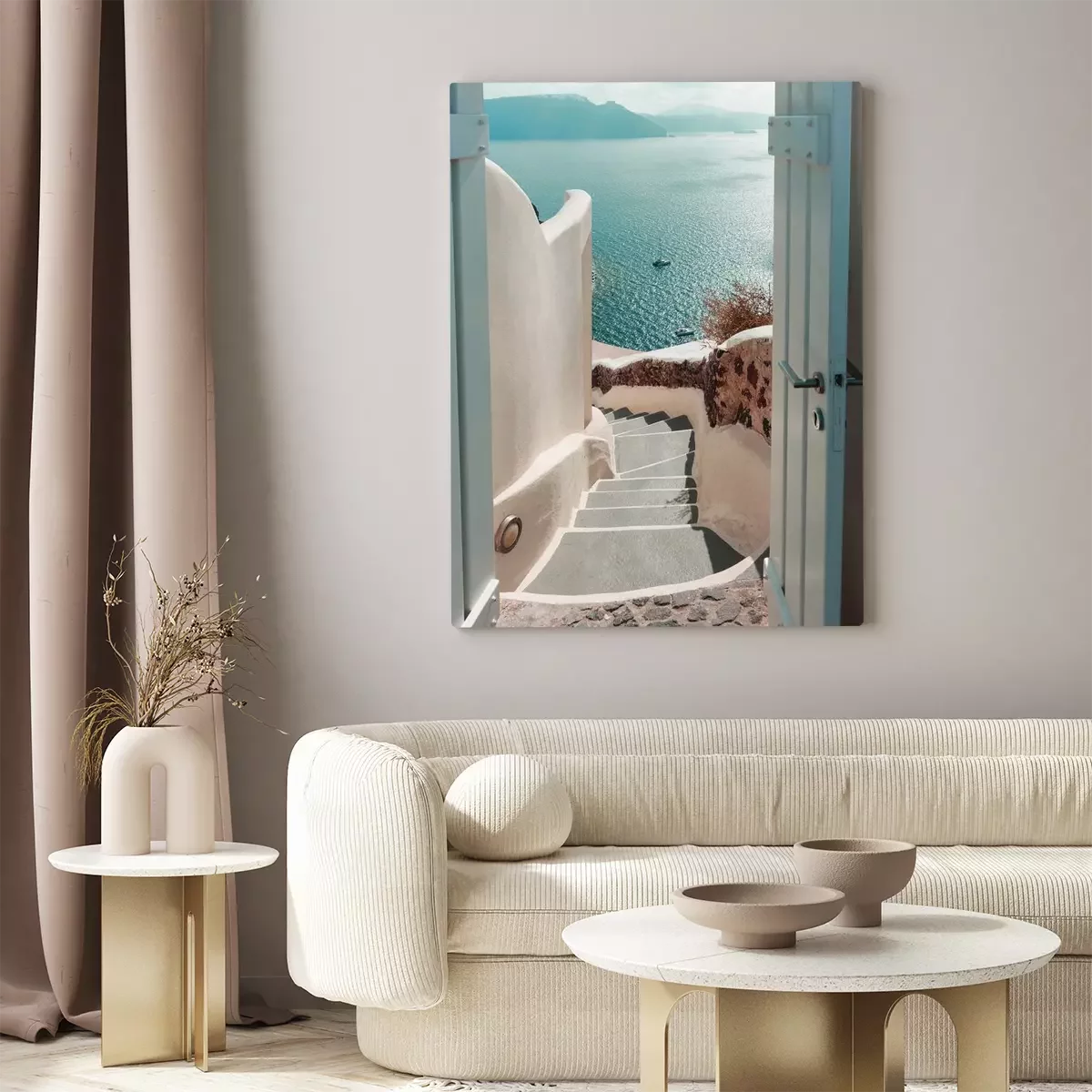 Het pittoreske griekse eiland santorini en de blauwe zee