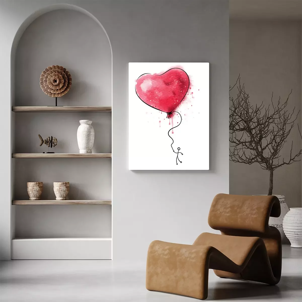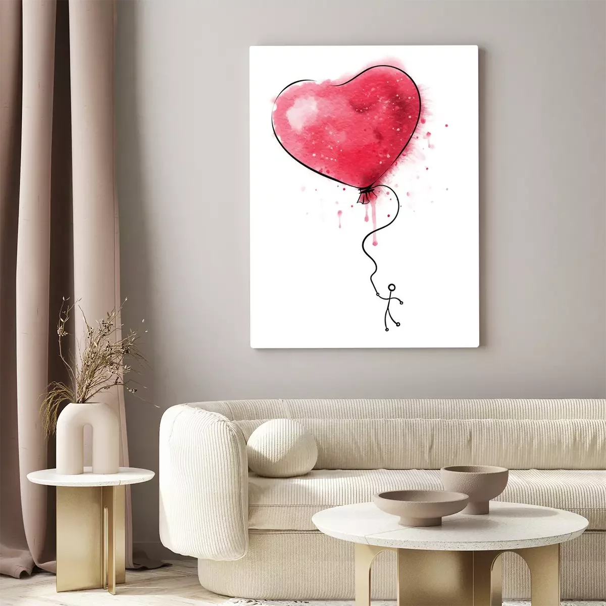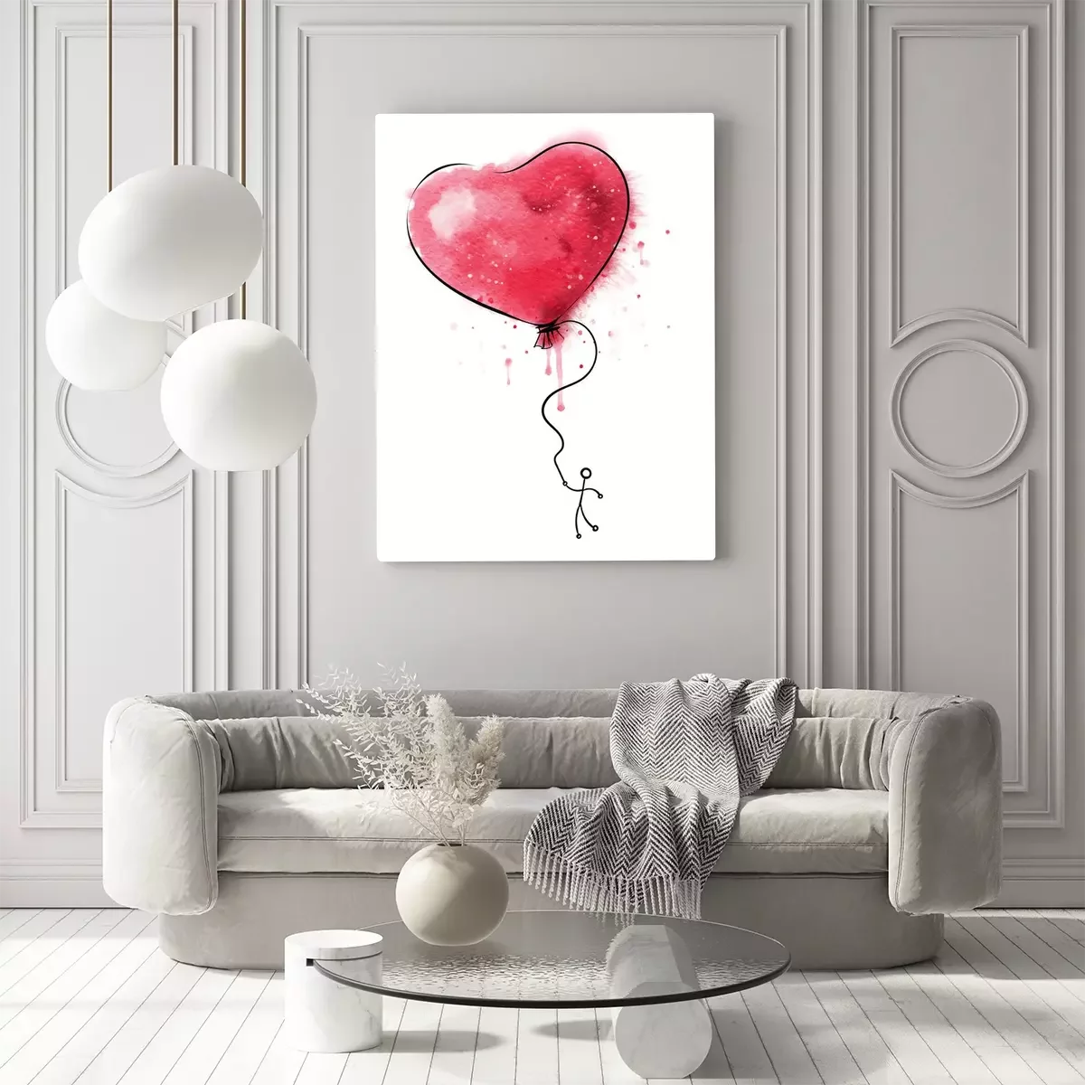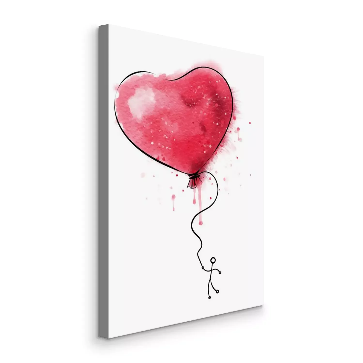 Canvas Het symbool van de rood hartballon van liefde met persoon flyin op het, waterverf.