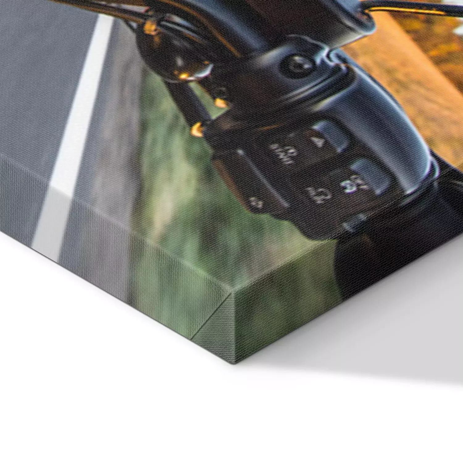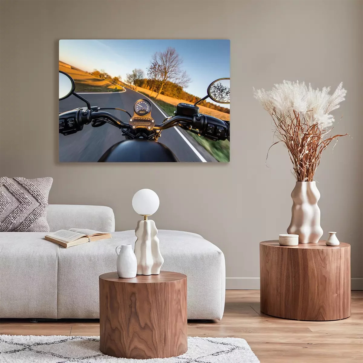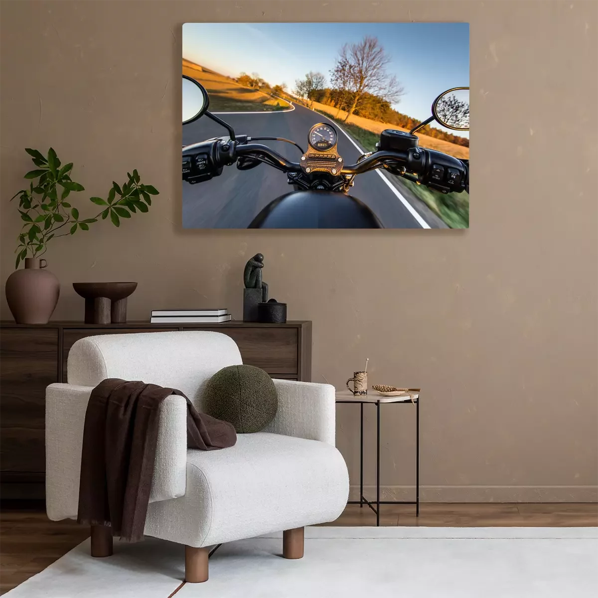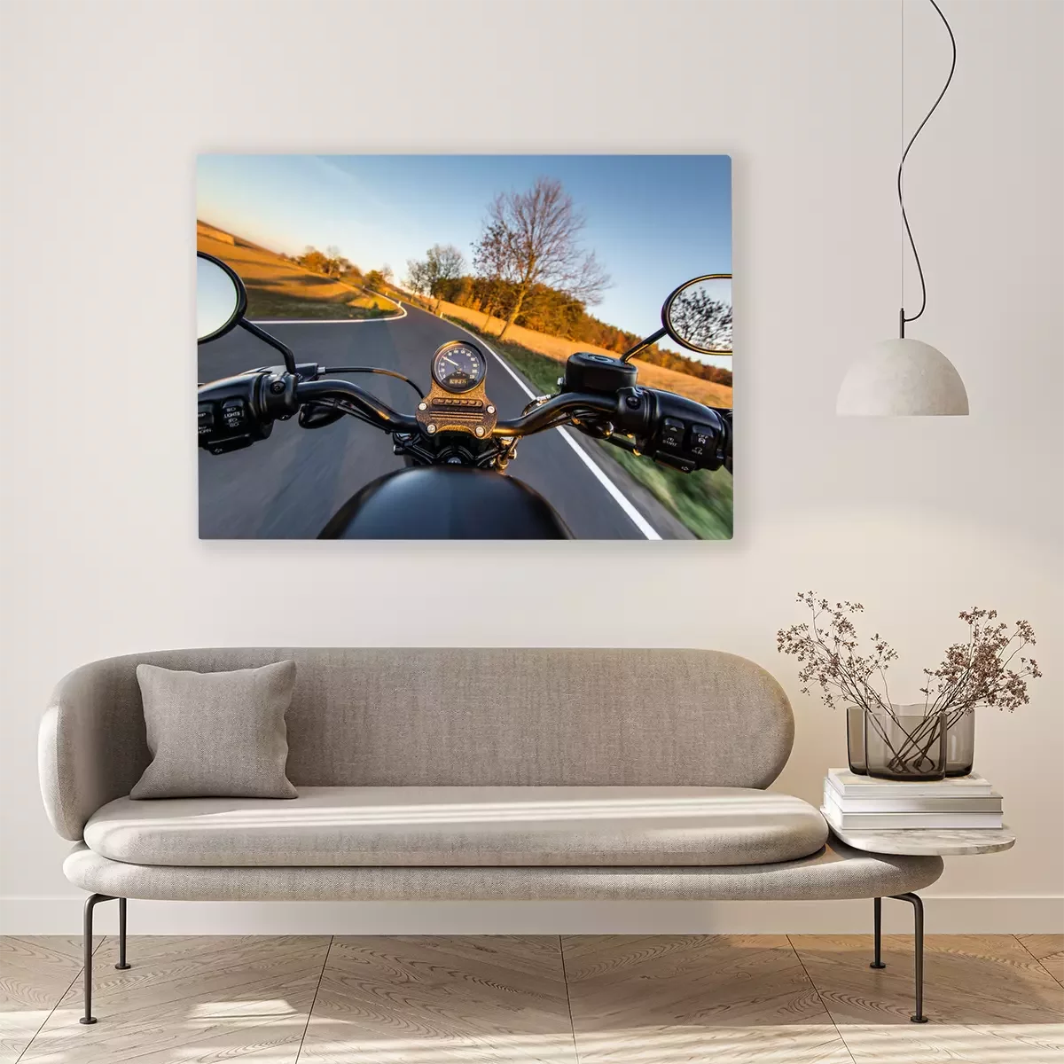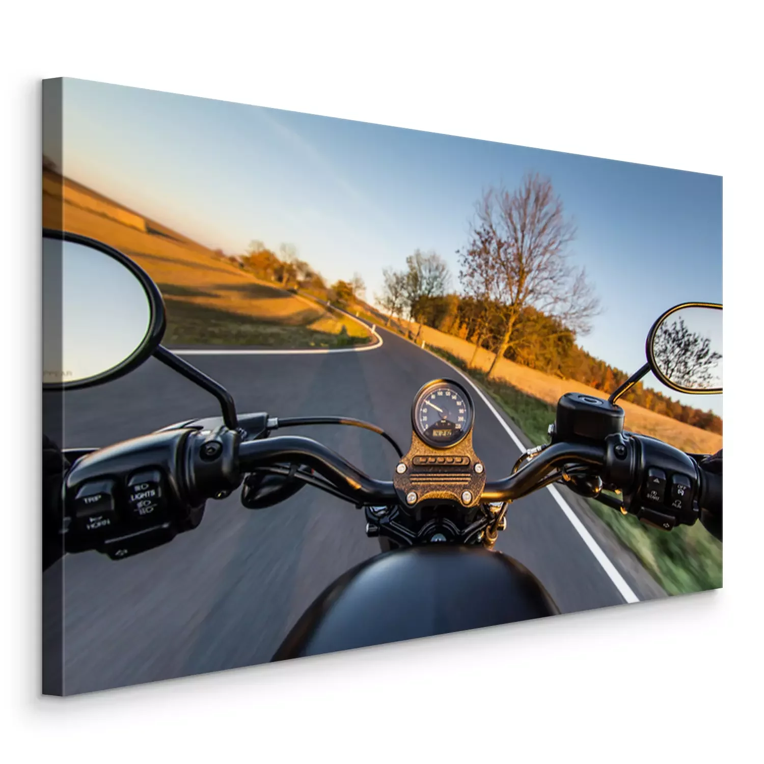 Canvas Het uitzicht over het stuur van een versnelling motorfiets