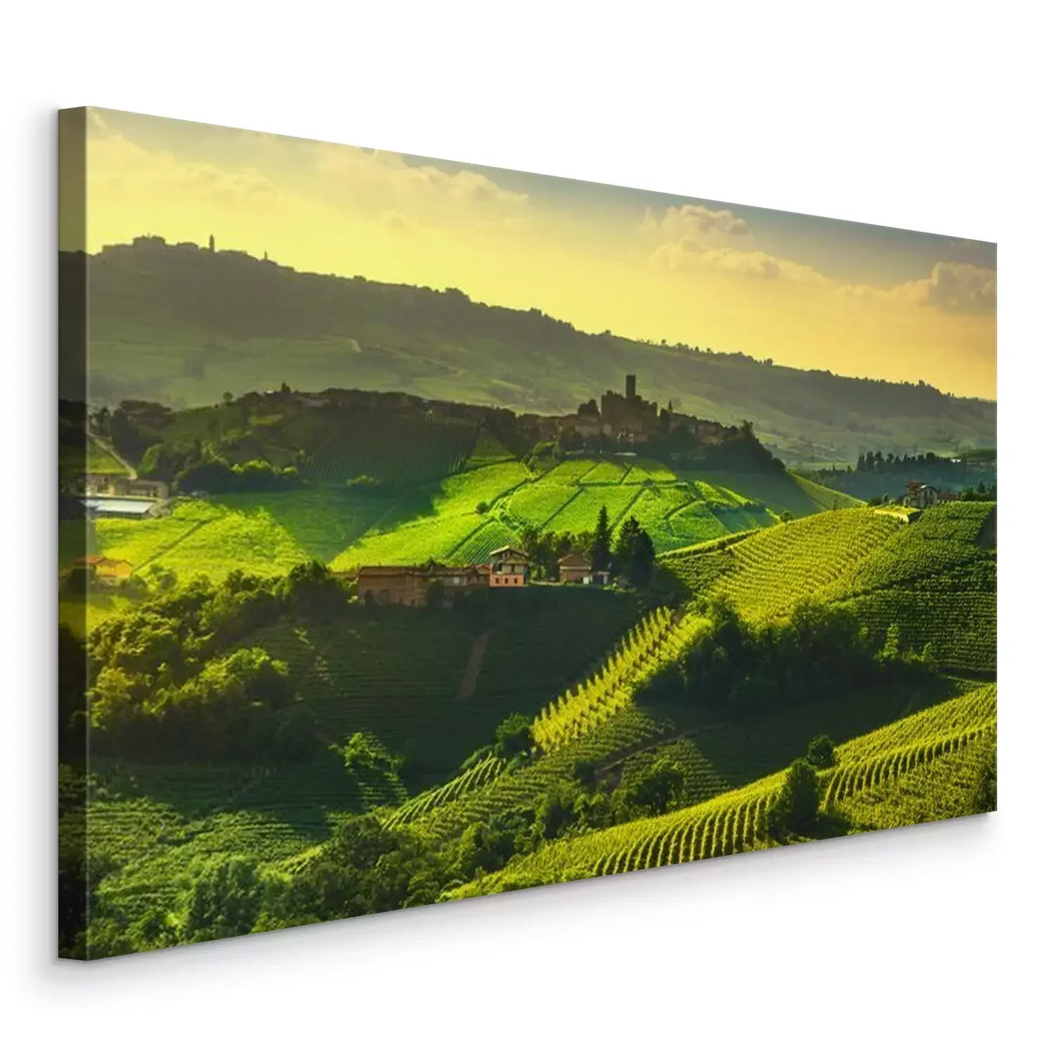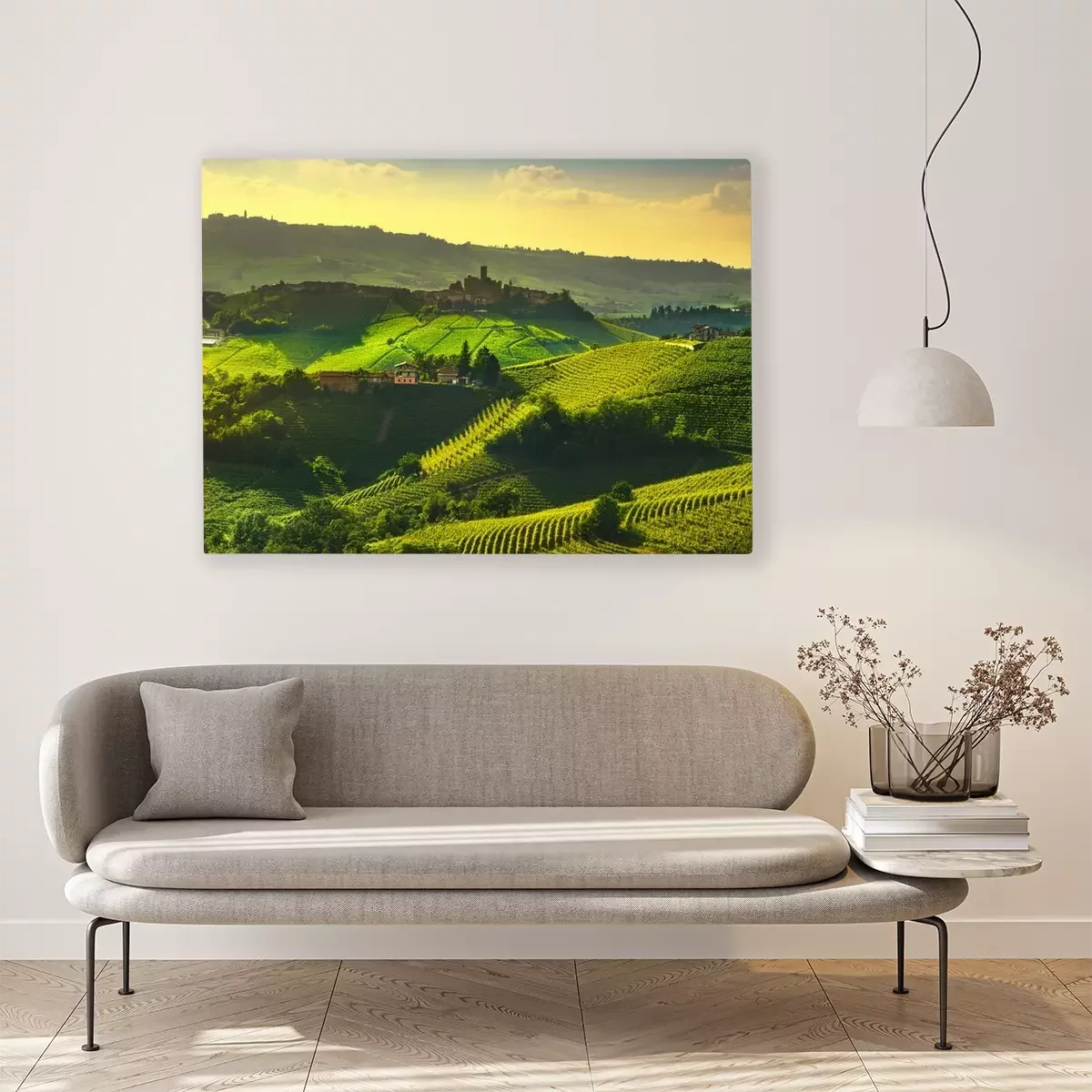 Canvas: Het uitzicht van de Langhewijngaarden, Castiglione Falletto en La Morra, Piemonte, Italië Europa.