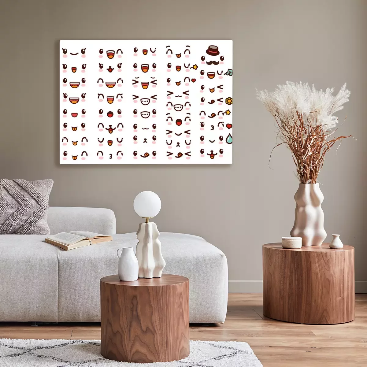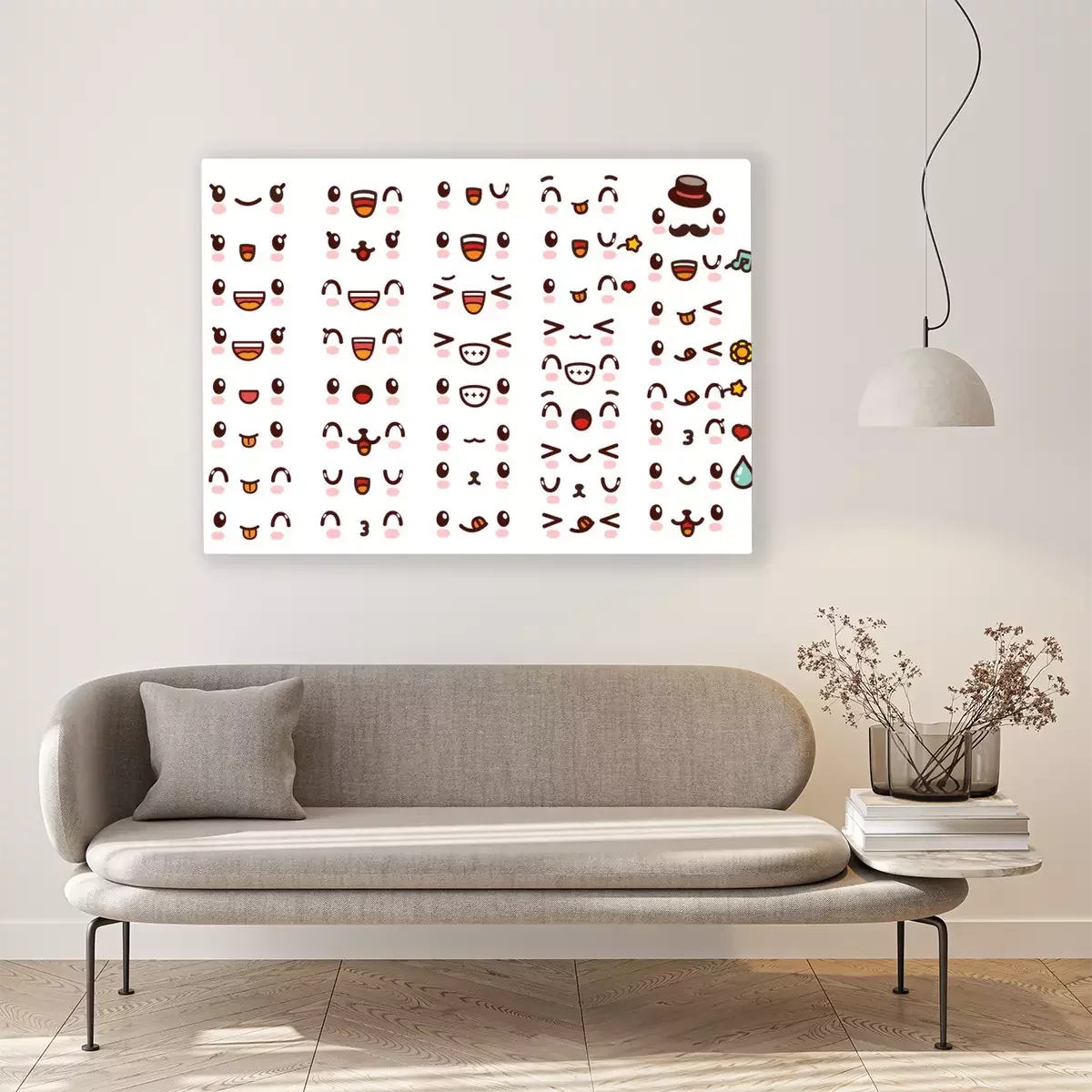 Canvas Het verzamelen van leuke mooie kawaii emoticon emoticons Doodle cartoon gezicht, glimlach, gelukkig, knipoog, opgewonden, slaperige, kou, kus, gek, zoet in kinderlijke manga cartoon stijl - Vector-bes