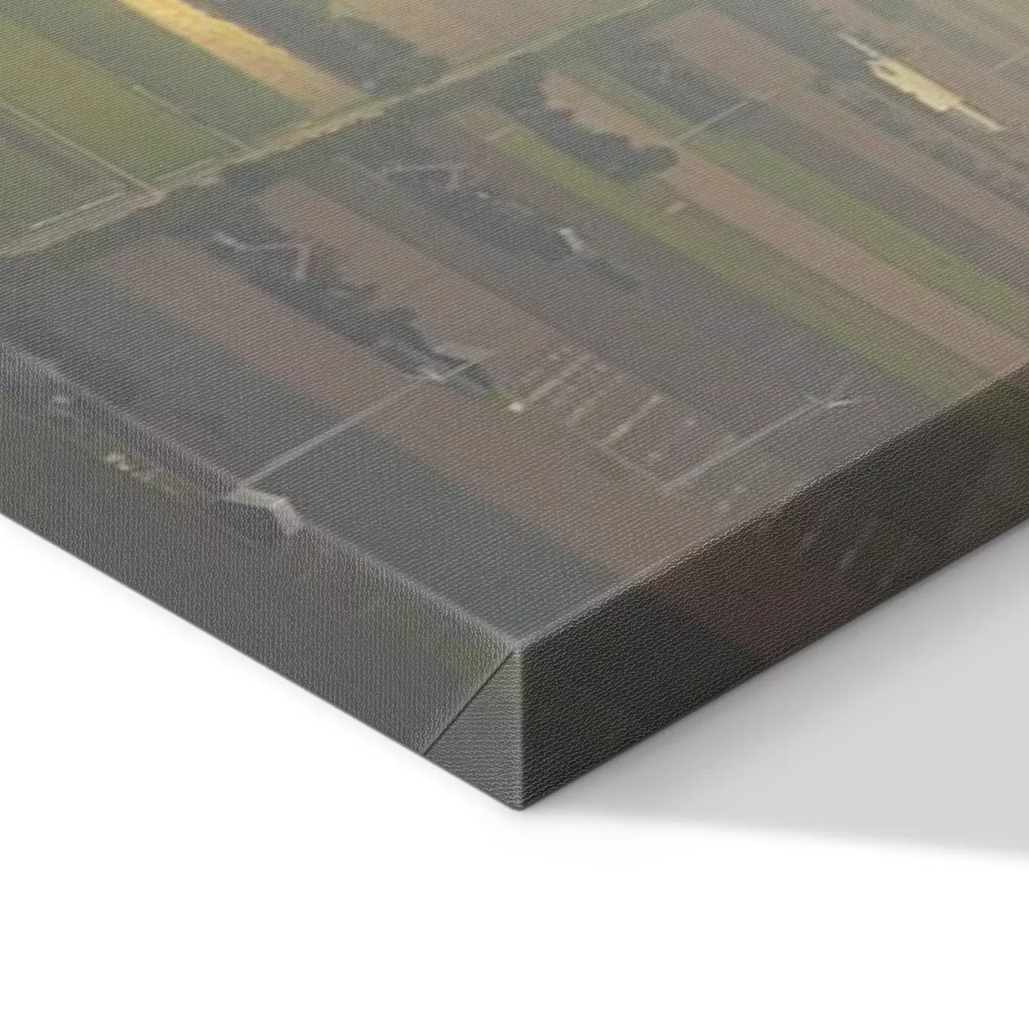 De print wordt aangebracht op hoogwaardig canvas dat op een schildersweefgetouw (spieraam) wordt gespannen. Omdat de print de zijranden bedekt, hoeft het ontwerp niet met een extra kader te worden omlijst. Wij raden ook composities aan die uit meerdere foto's bestaan en zo een coherente compositie vormen.