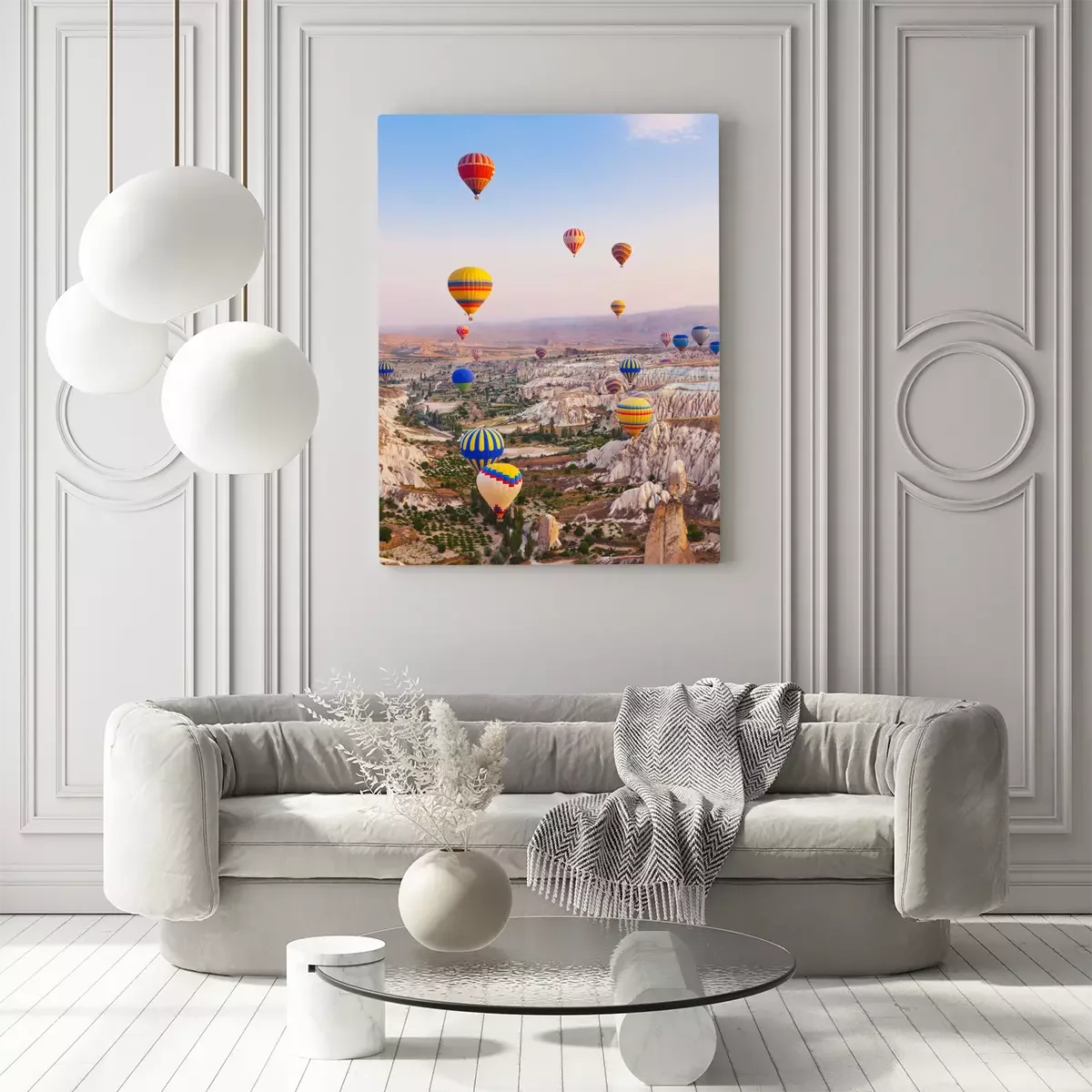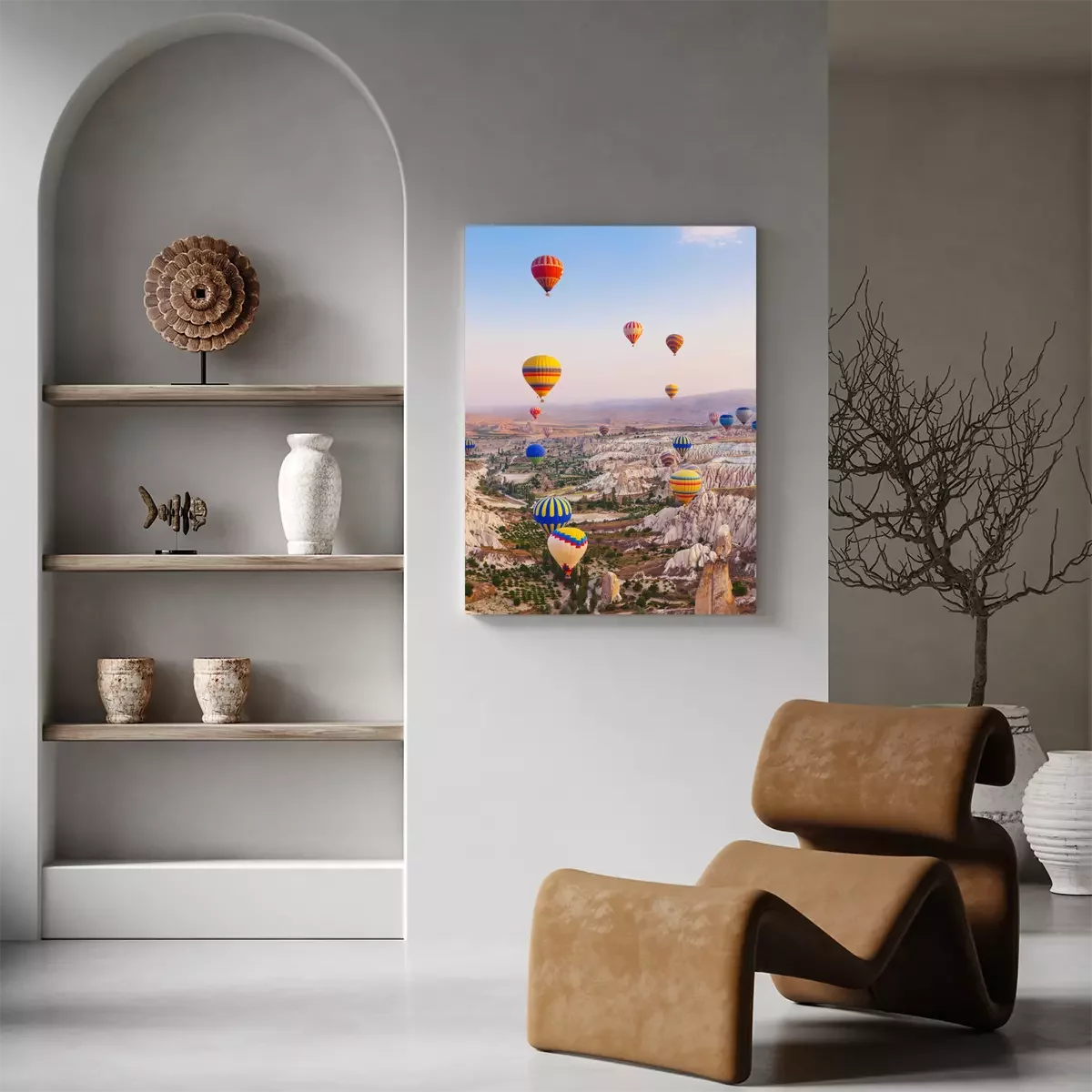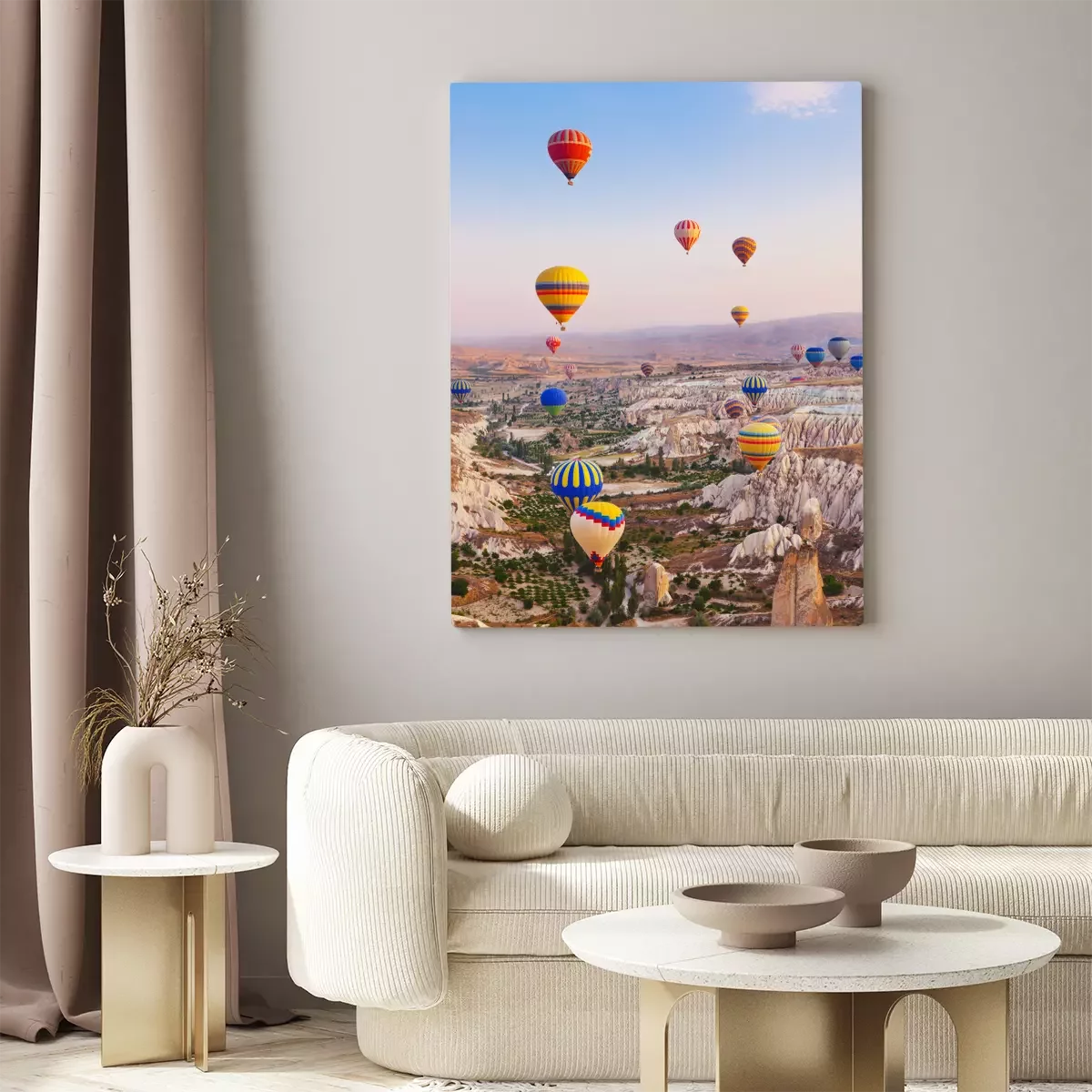 Canvas Hete luchtballon die over Cappadocia Turkije