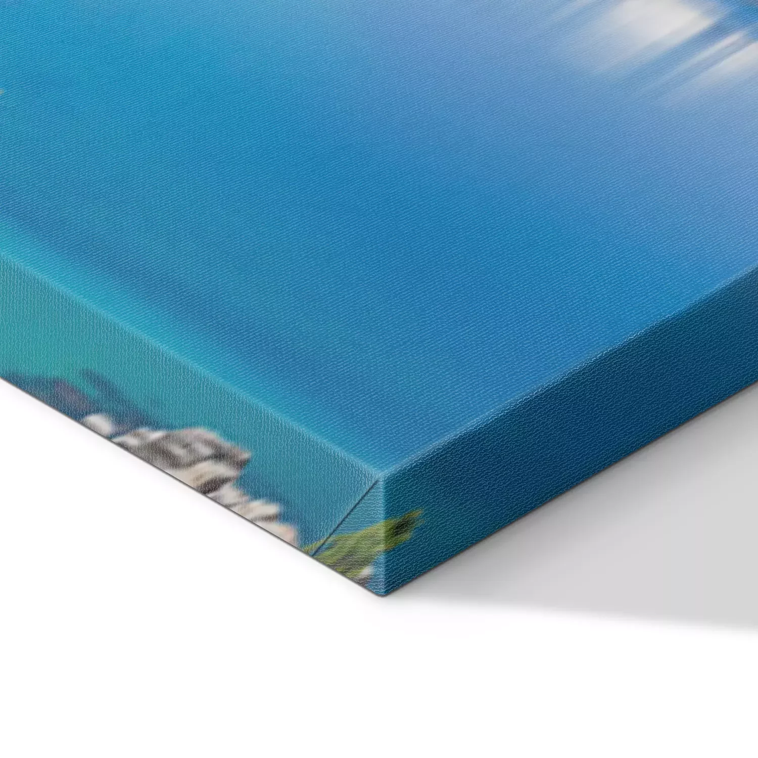 De print wordt aangebracht op hoogwaardig canvas dat op een schildersweefgetouw (spieraam) wordt gespannen. Omdat de print de zijranden bedekt, hoeft het ontwerp niet met een extra kader te worden omlijst. Wij raden ook composities aan die uit meerdere foto's bestaan en zo een coherente compositie vormen.