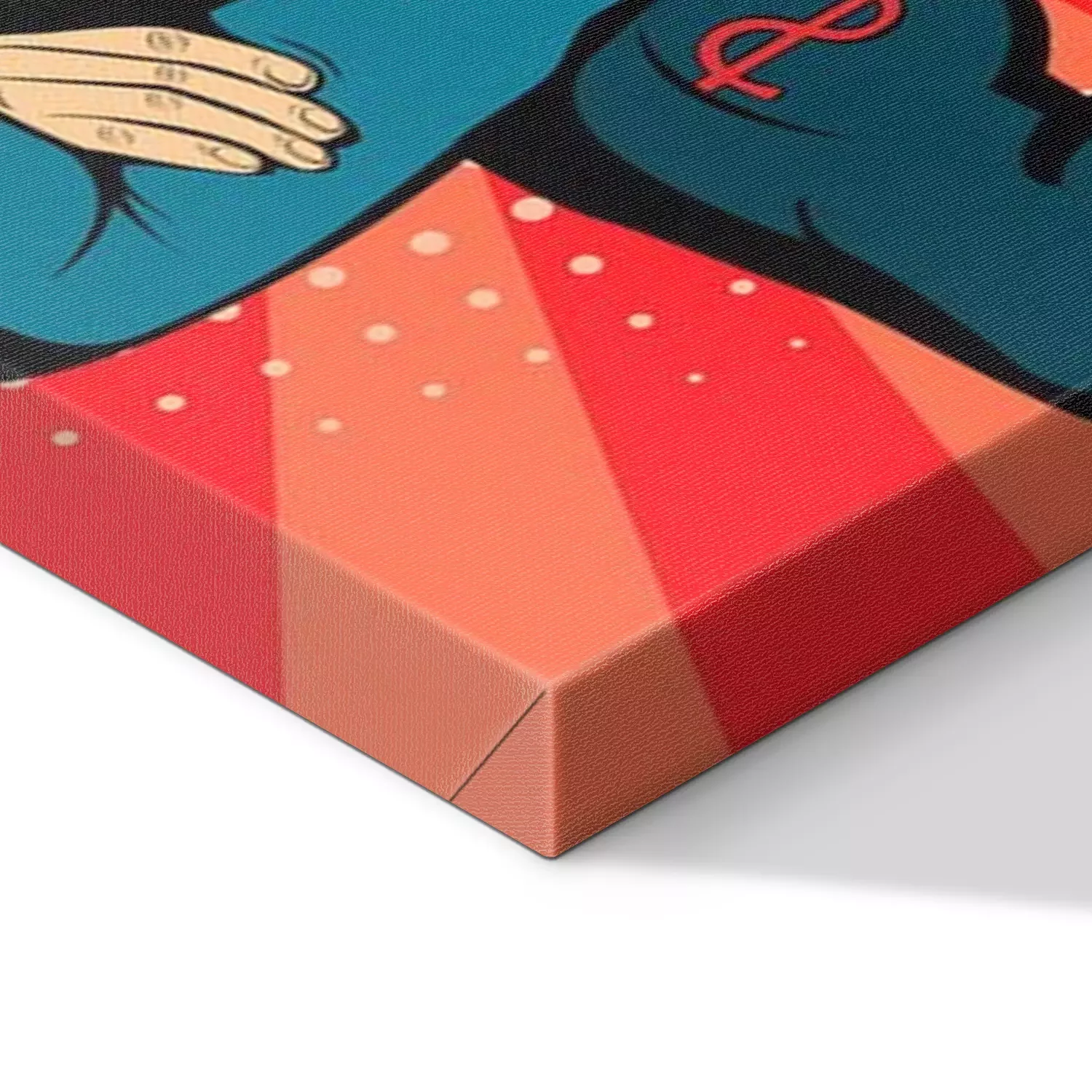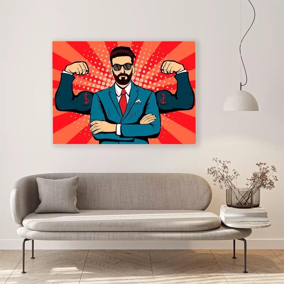 Canvas: Hipster beard businessman with muscles pop art retro style. Strong Businessman in glasses in comic style. Success concept vector illustration.