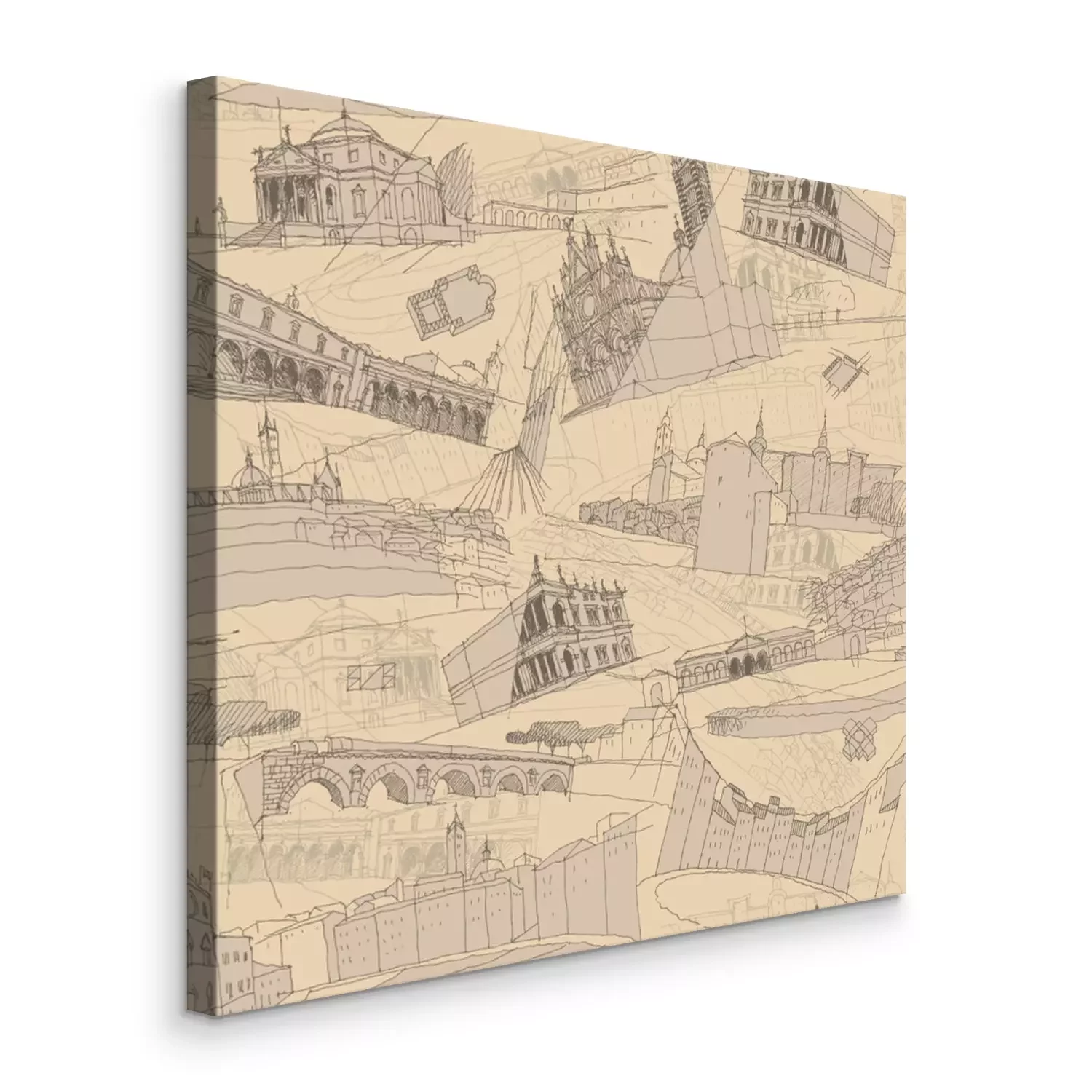 Canvas: Historische Italiaanse architectuur Collage naadloze patroon
