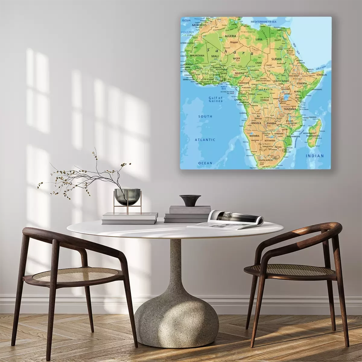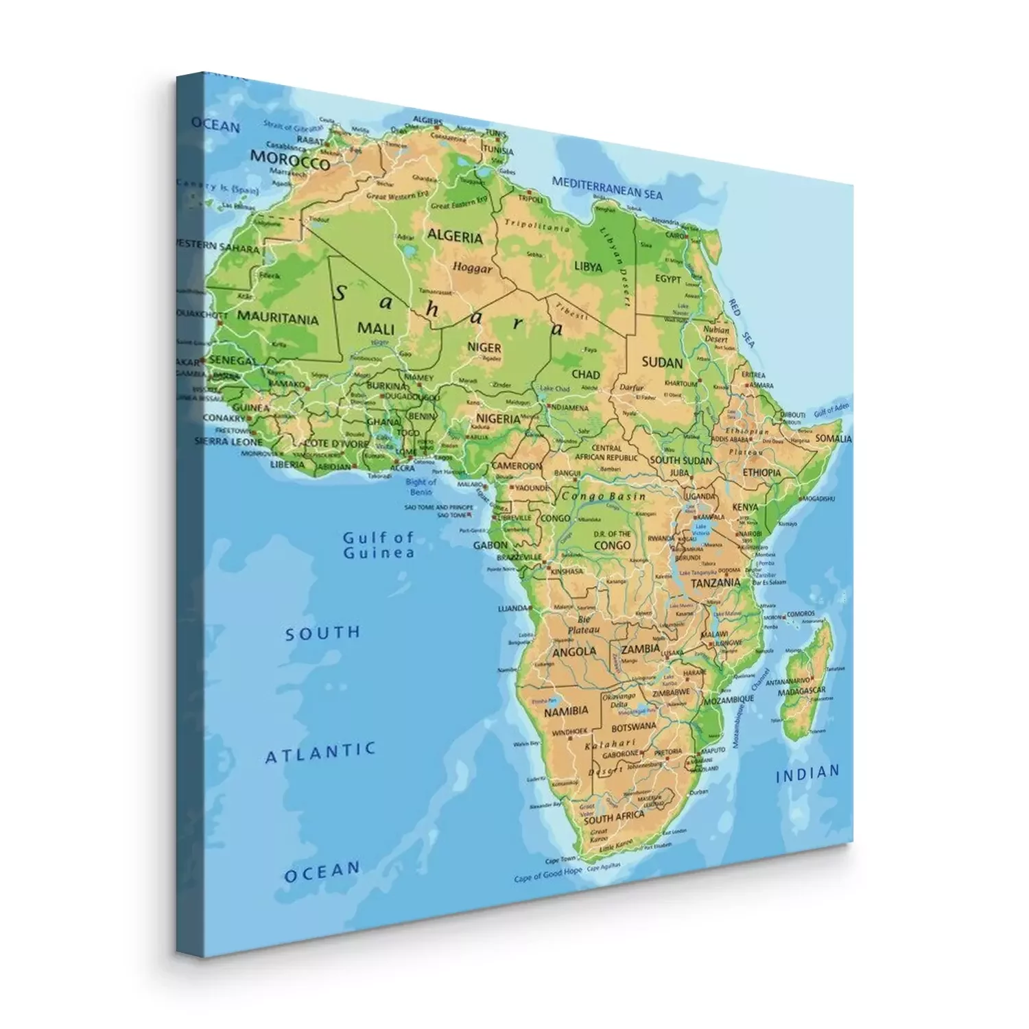 Canvas Hoge gedetailleerde Afrika fysieke kaart met de etikettering.