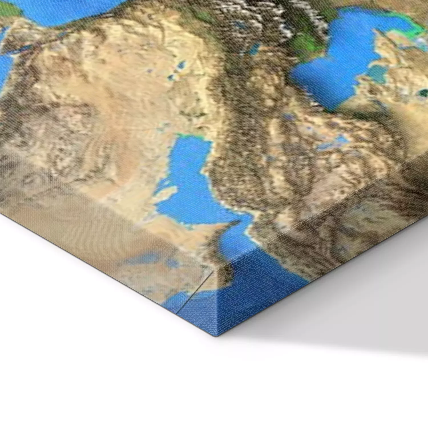 De print wordt aangebracht op hoogwaardig canvas dat op een schildersweefgetouw (spieraam) wordt gespannen. Omdat de print de zijranden bedekt, hoeft het ontwerp niet met een extra kader te worden omlijst. Wij raden ook composities aan die uit meerdere foto's bestaan en zo een coherente compositie vormen.