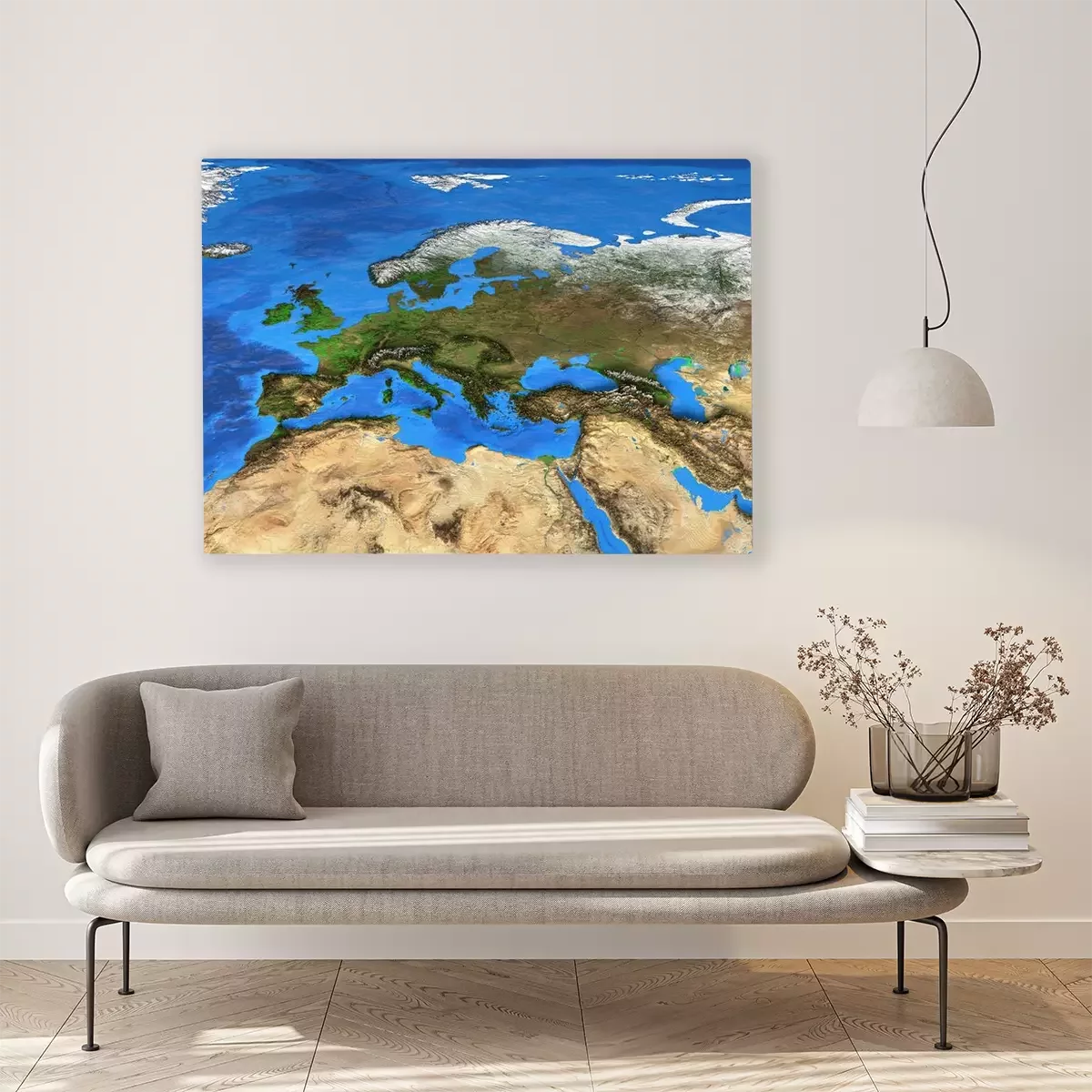 Canvas: Hoge resolutie kaart van de wereld gericht op Europa