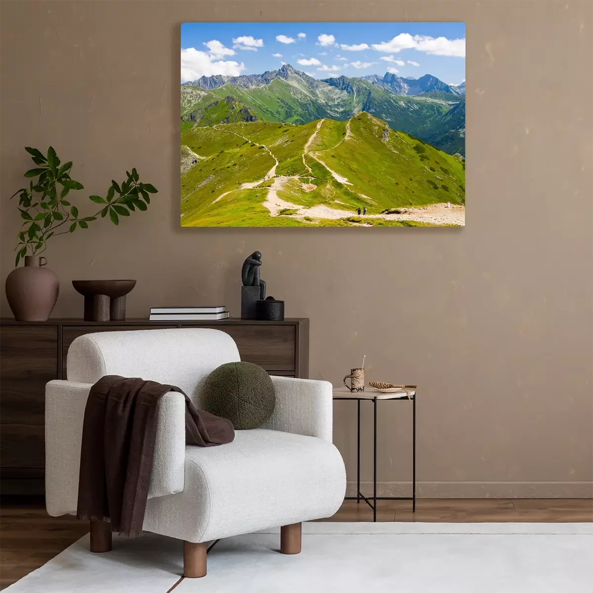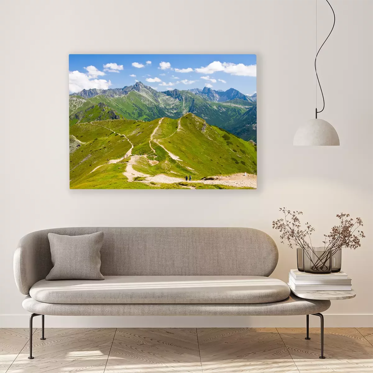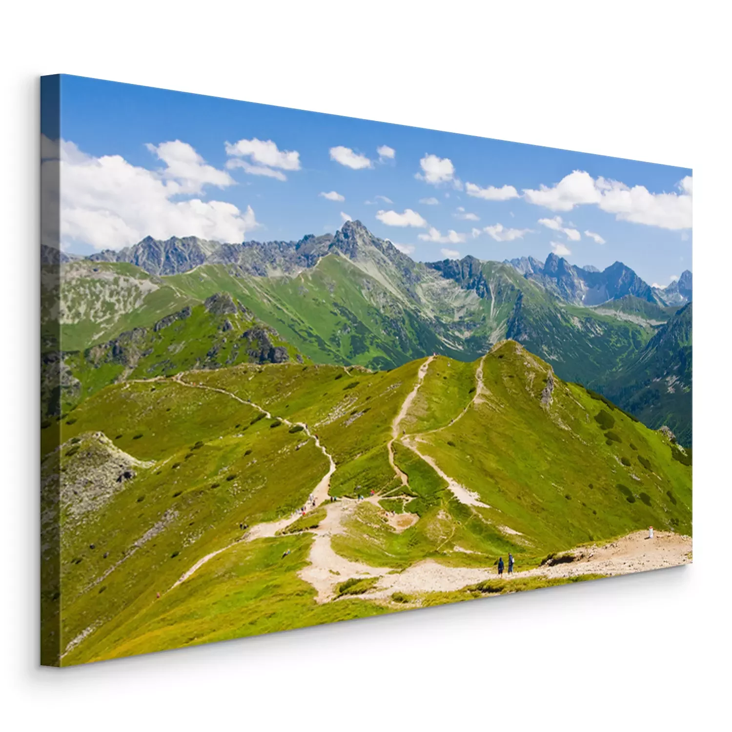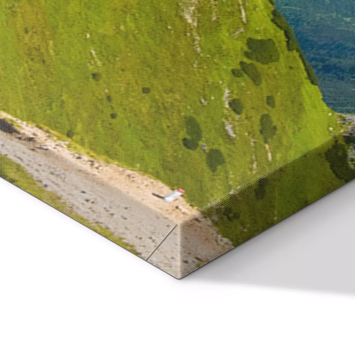 De print wordt aangebracht op hoogwaardig canvas dat op een schildersweefgetouw (spieraam) wordt gespannen. Omdat de print de zijranden bedekt, hoeft het ontwerp niet met een extra kader te worden omlijst. Wij raden ook composities aan die uit meerdere foto's bestaan en zo een coherente compositie vormen.