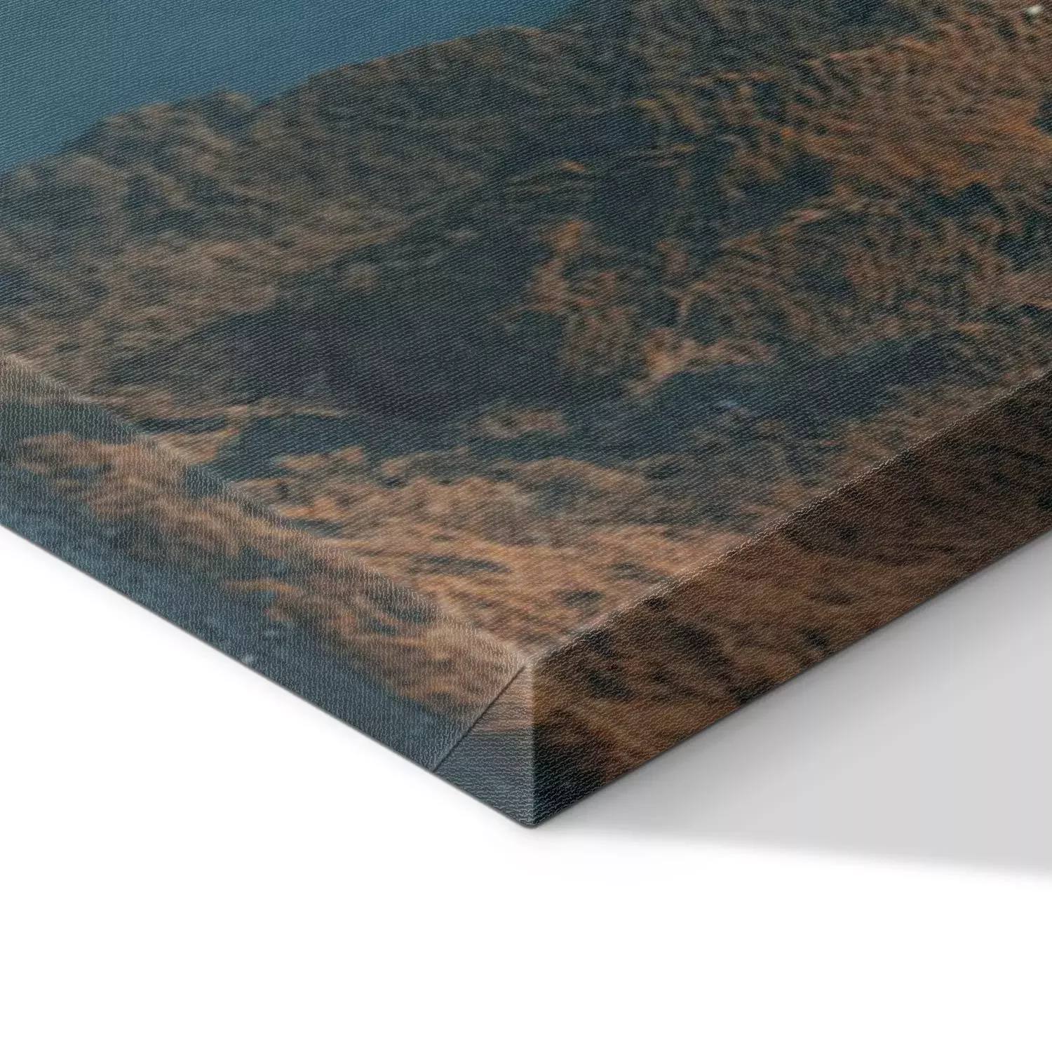 De print wordt aangebracht op hoogwaardig canvas dat op een schildersweefgetouw (spieraam) wordt gespannen. Omdat de print de zijranden bedekt, hoeft het ontwerp niet met een extra kader te worden omlijst. Wij raden ook composities aan die uit meerdere foto's bestaan en zo een coherente compositie vormen.