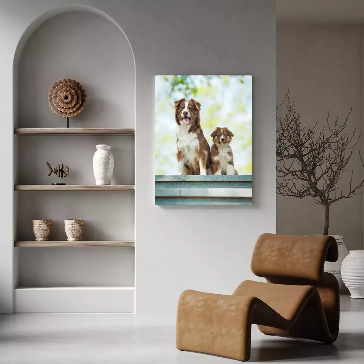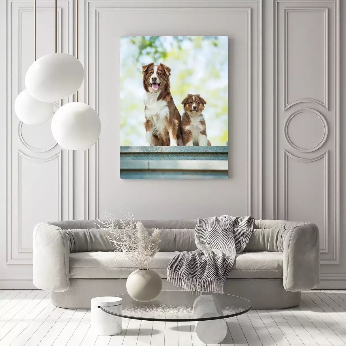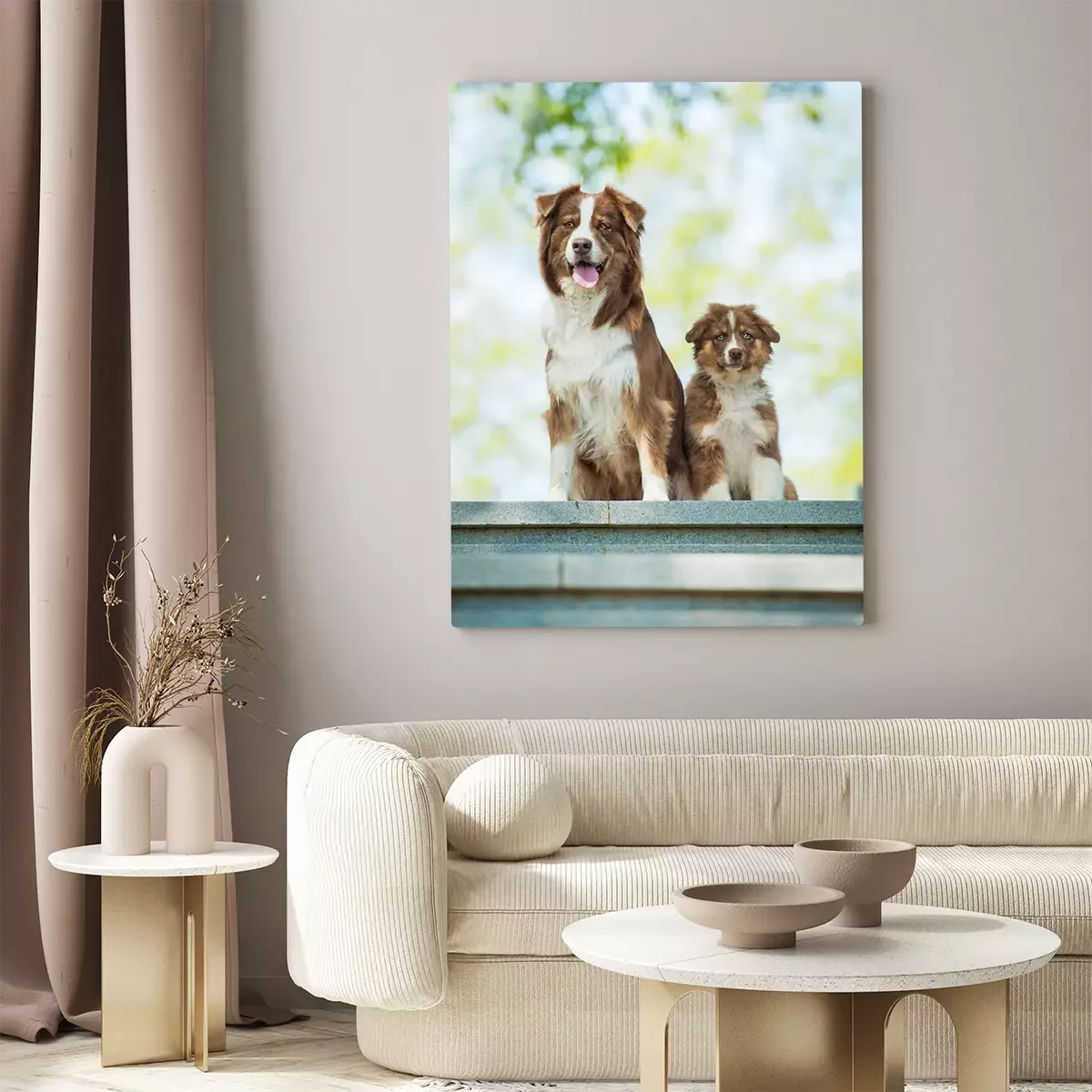 De print wordt aangebracht op hoogwaardig canvas dat op een schildersweefgetouw (spieraam) wordt gespannen. Omdat de print de zijranden bedekt, hoeft het ontwerp niet met een extra kader te worden omlijst. Wij raden ook composities aan die uit meerdere foto's bestaan en zo een coherente compositie vormen.