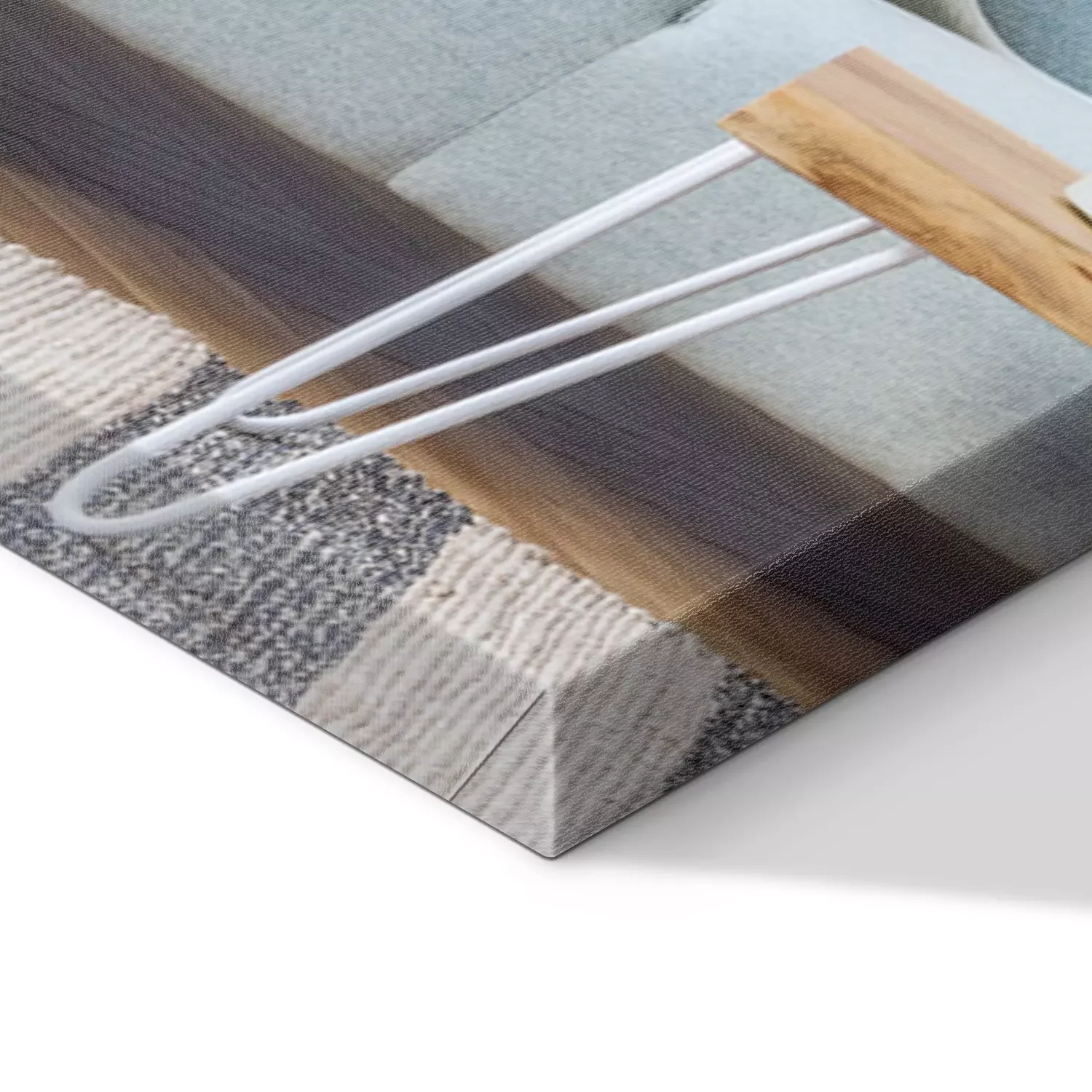 De print wordt aangebracht op hoogwaardig canvas dat op een schildersweefgetouw (spieraam) wordt gespannen. Omdat de print de zijranden bedekt, hoeft het ontwerp niet met een extra kader te worden omlijst. Wij raden ook composities aan die uit meerdere foto's bestaan en zo een coherente compositie vormen.