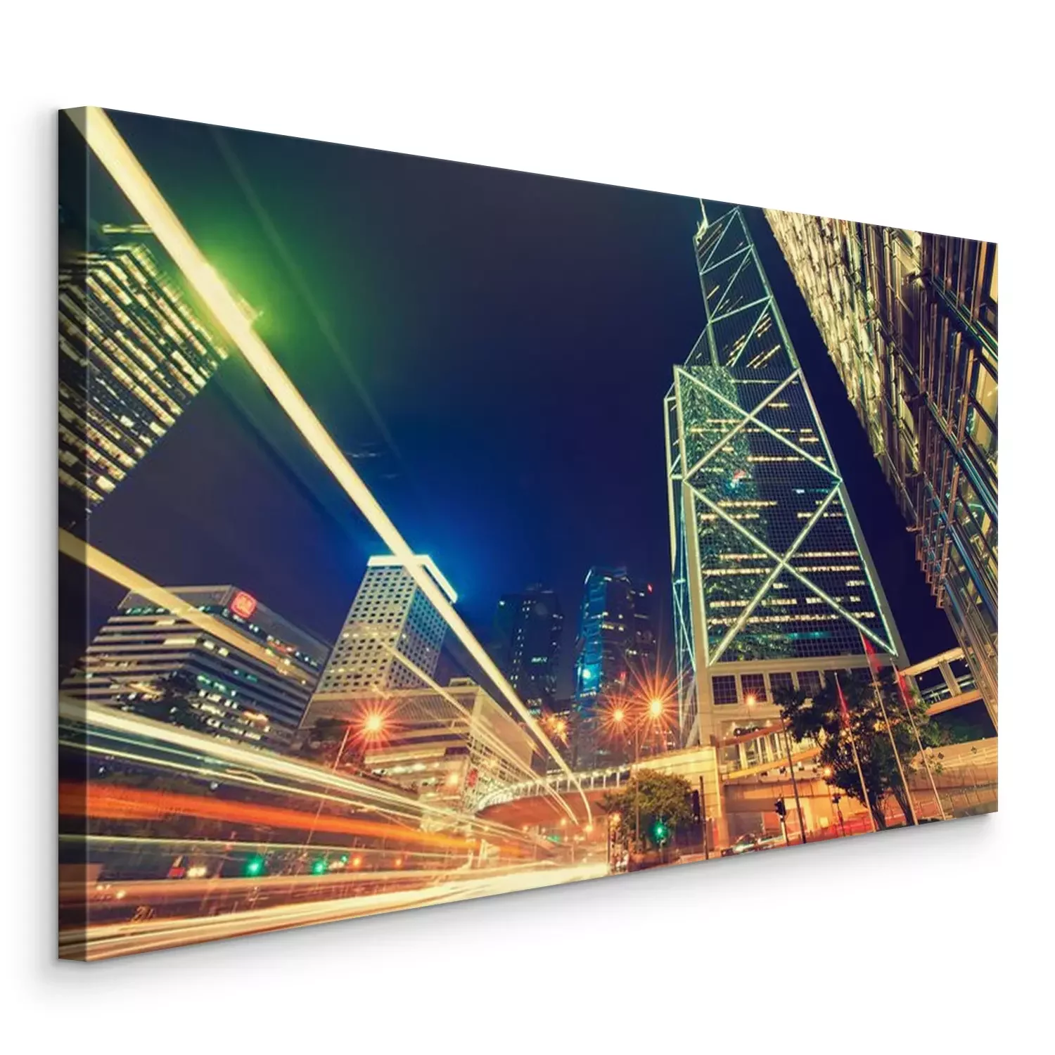 Canvas Hong Kong, China, nachtzicht. Stralen van felle lichten grote stad Hong Kong