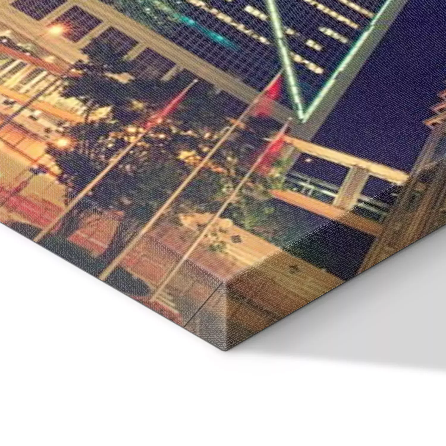 De print wordt aangebracht op hoogwaardig canvas dat op een schildersweefgetouw (spieraam) wordt gespannen. Omdat de print de zijranden bedekt, hoeft het ontwerp niet met een extra kader te worden omlijst. Wij raden ook composities aan die uit meerdere foto's bestaan en zo een coherente compositie vormen.