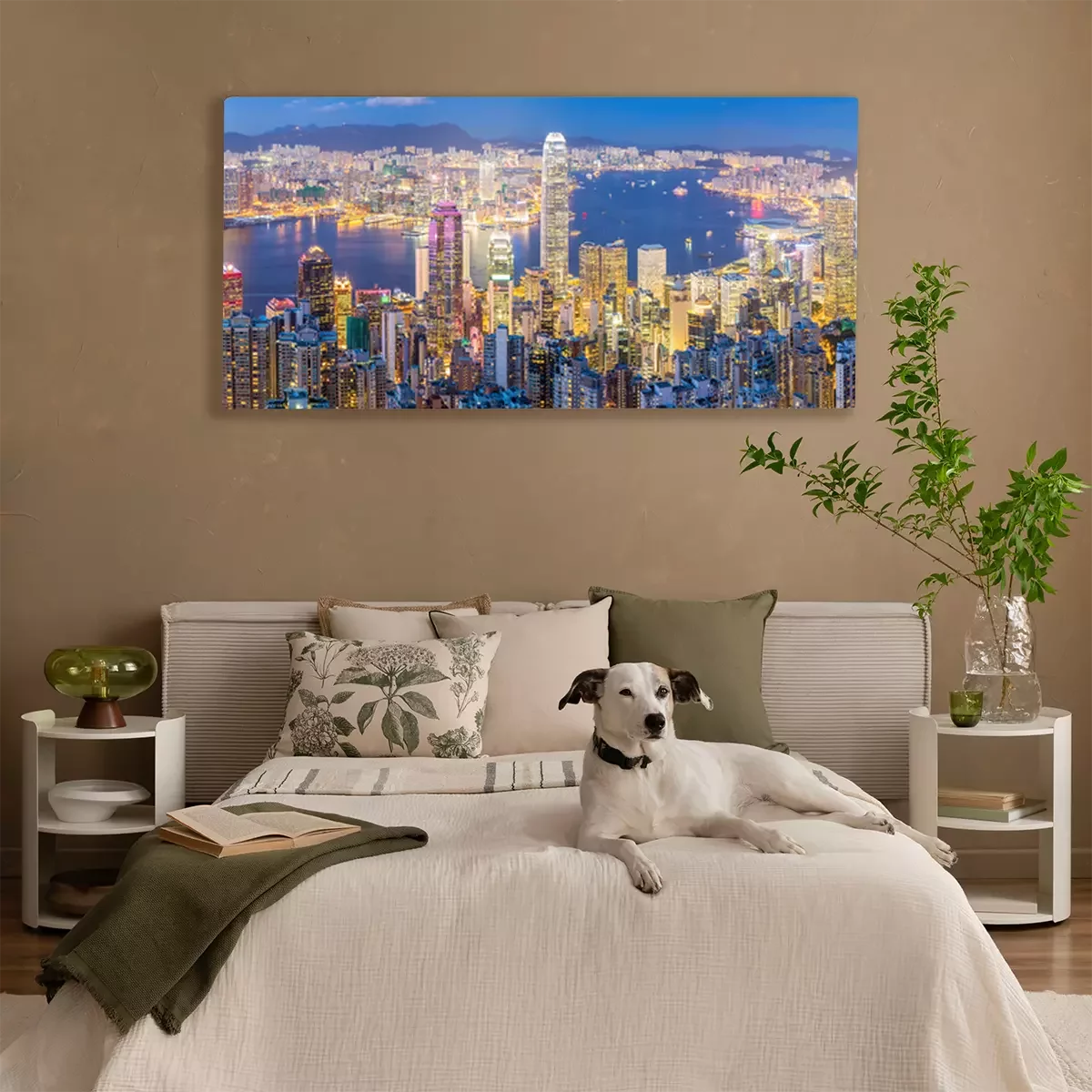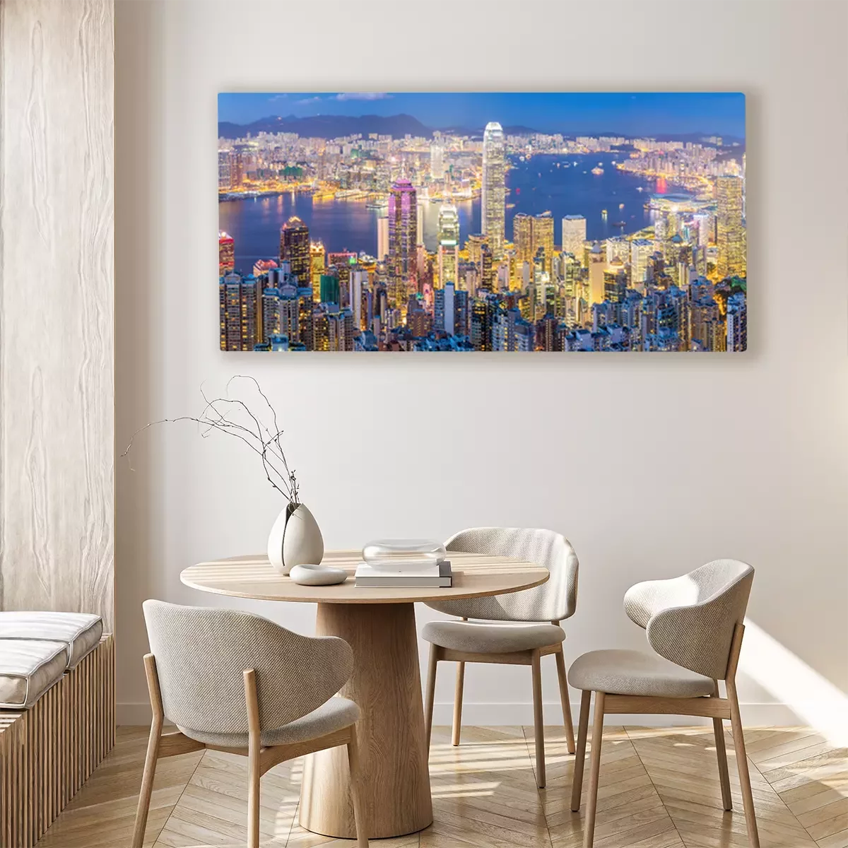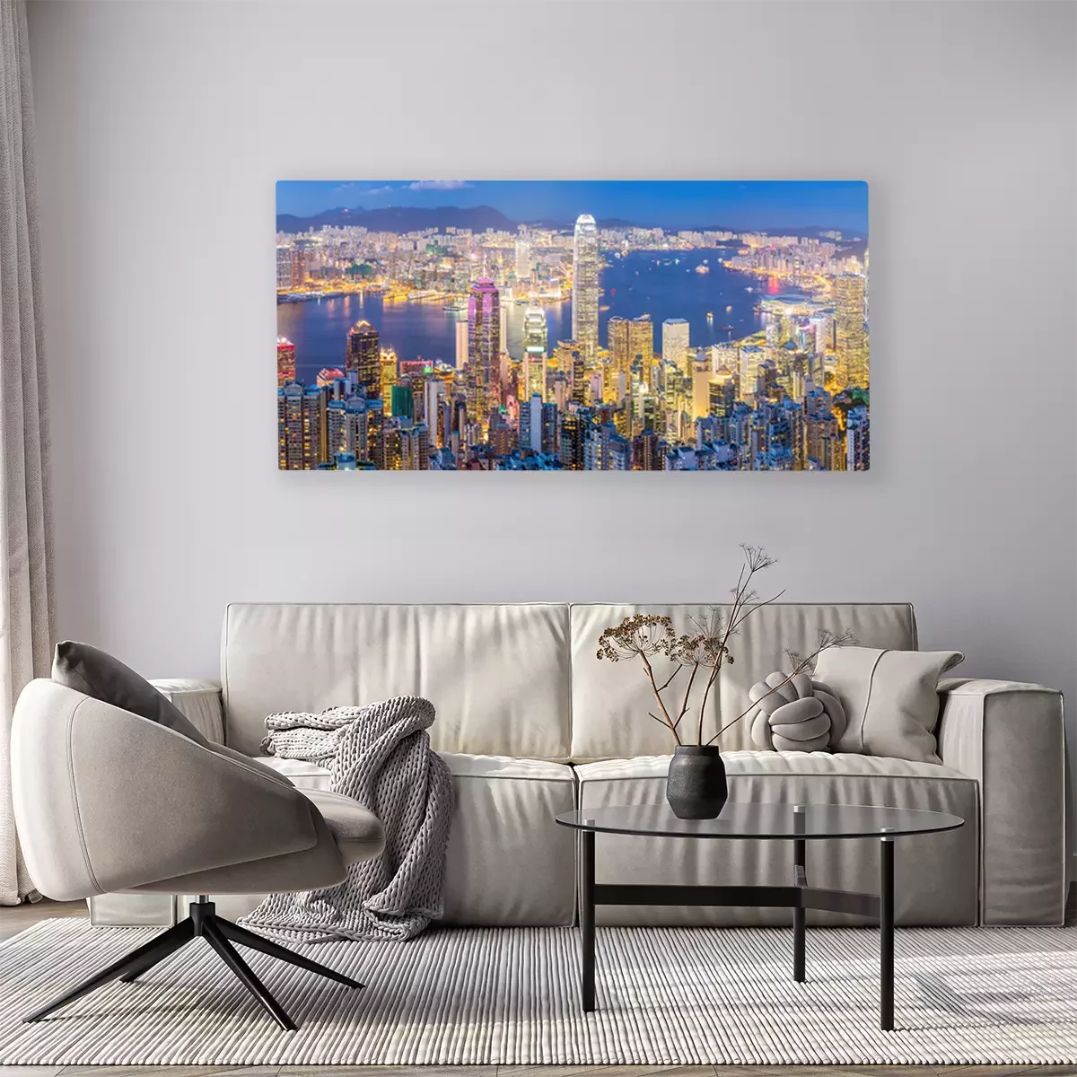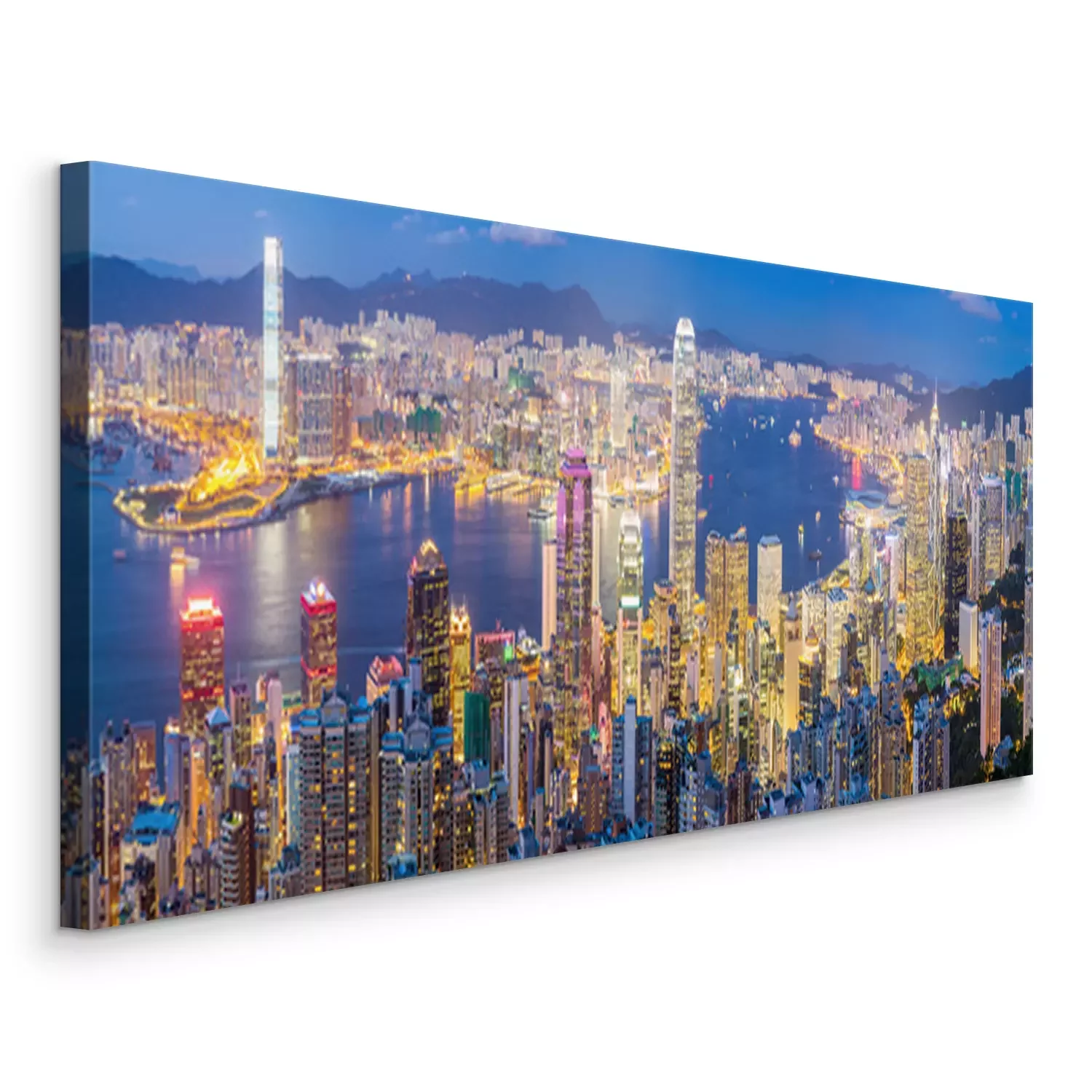 Canvas: Hong Kong skyline bij zonsondergang Panorama