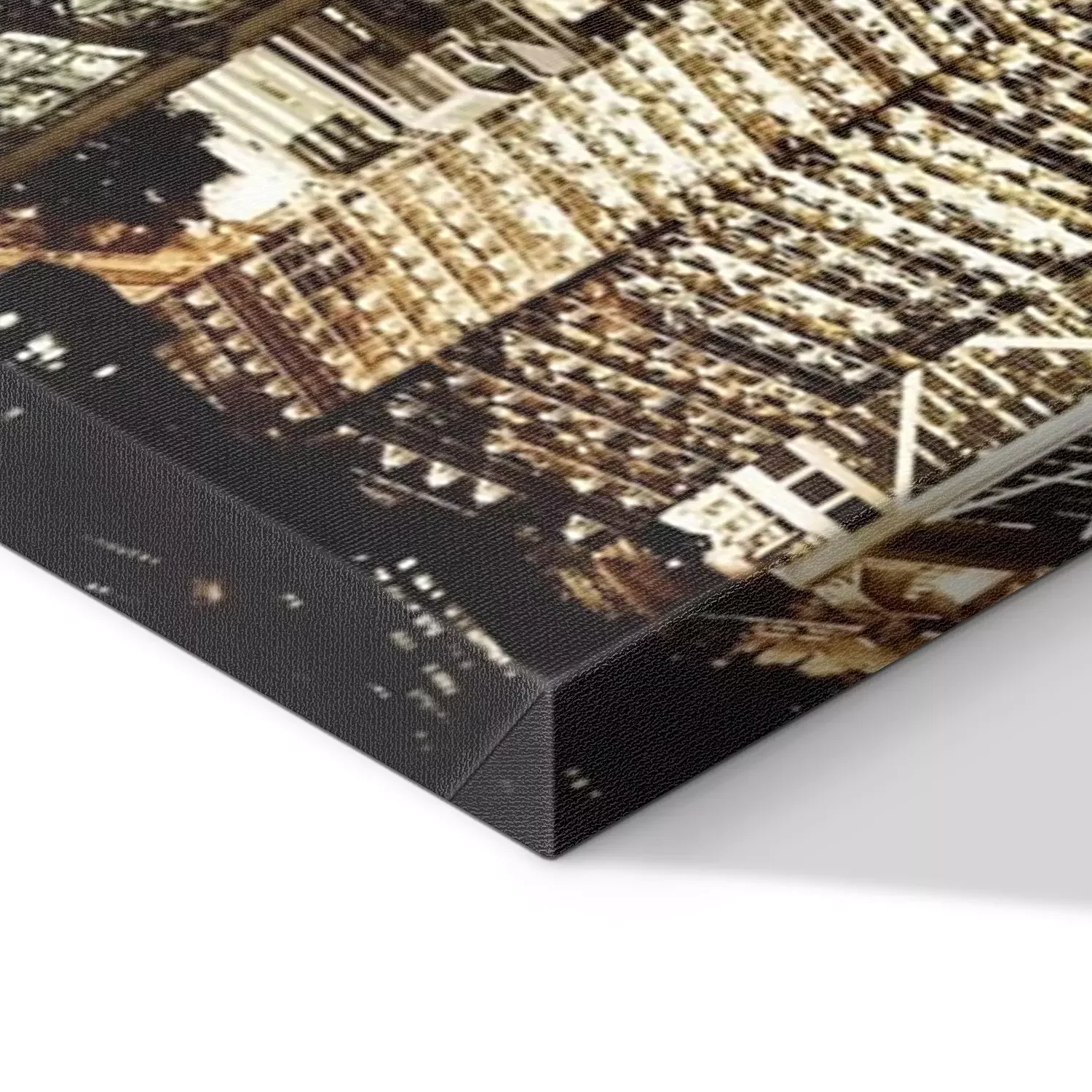 De print wordt aangebracht op hoogwaardig canvas dat op een schildersweefgetouw (spieraam) wordt gespannen. Omdat de print de zijranden bedekt, hoeft het ontwerp niet met een extra kader te worden omlijst. Wij raden ook composities aan die uit meerdere foto's bestaan en zo een coherente compositie vormen.
