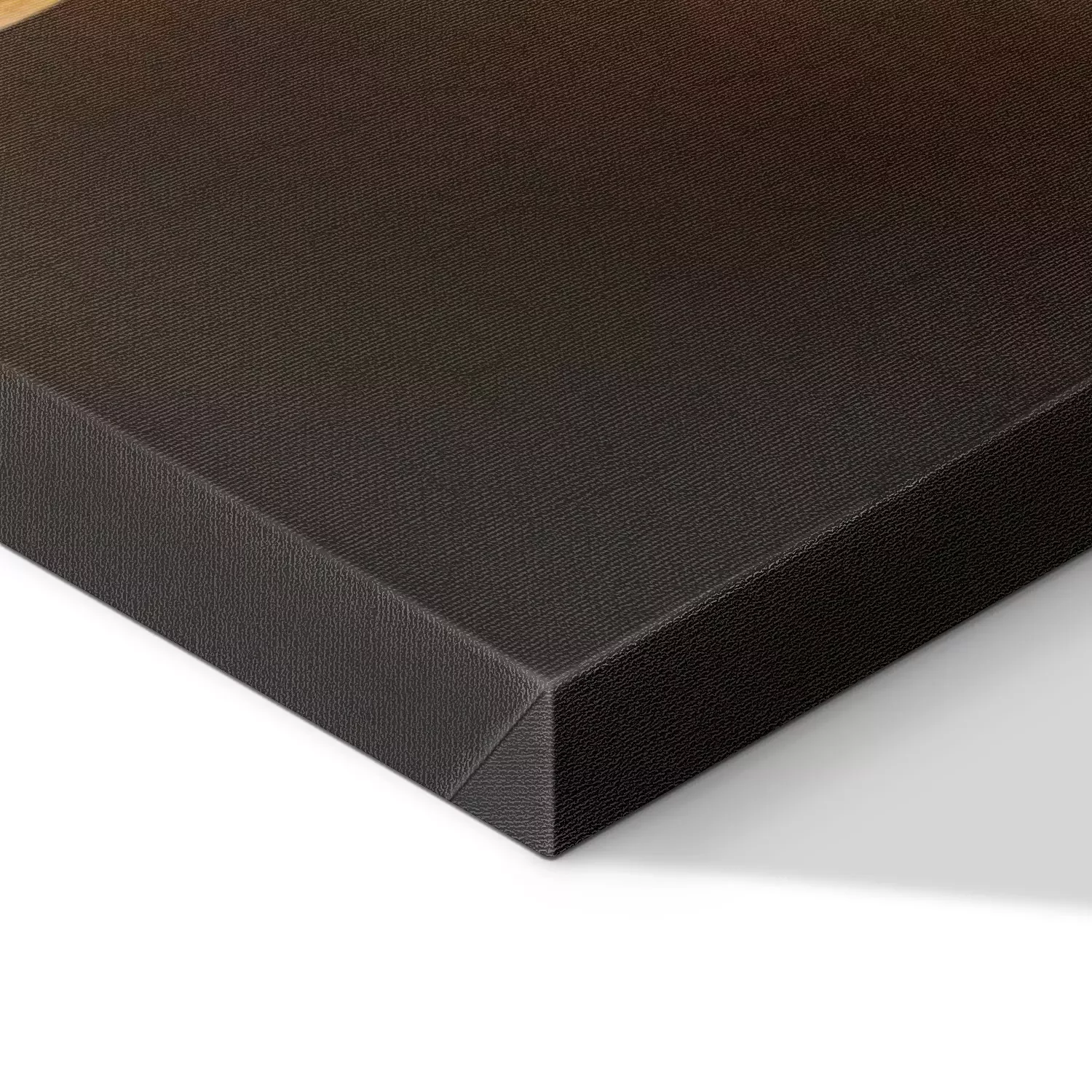 De print wordt aangebracht op hoogwaardig canvas dat op een schildersweefgetouw (spieraam) wordt gespannen. Omdat de print de zijranden bedekt, hoeft het ontwerp niet met een extra kader te worden omlijst. Wij raden ook composities aan die uit meerdere foto's bestaan en zo een coherente compositie vormen.