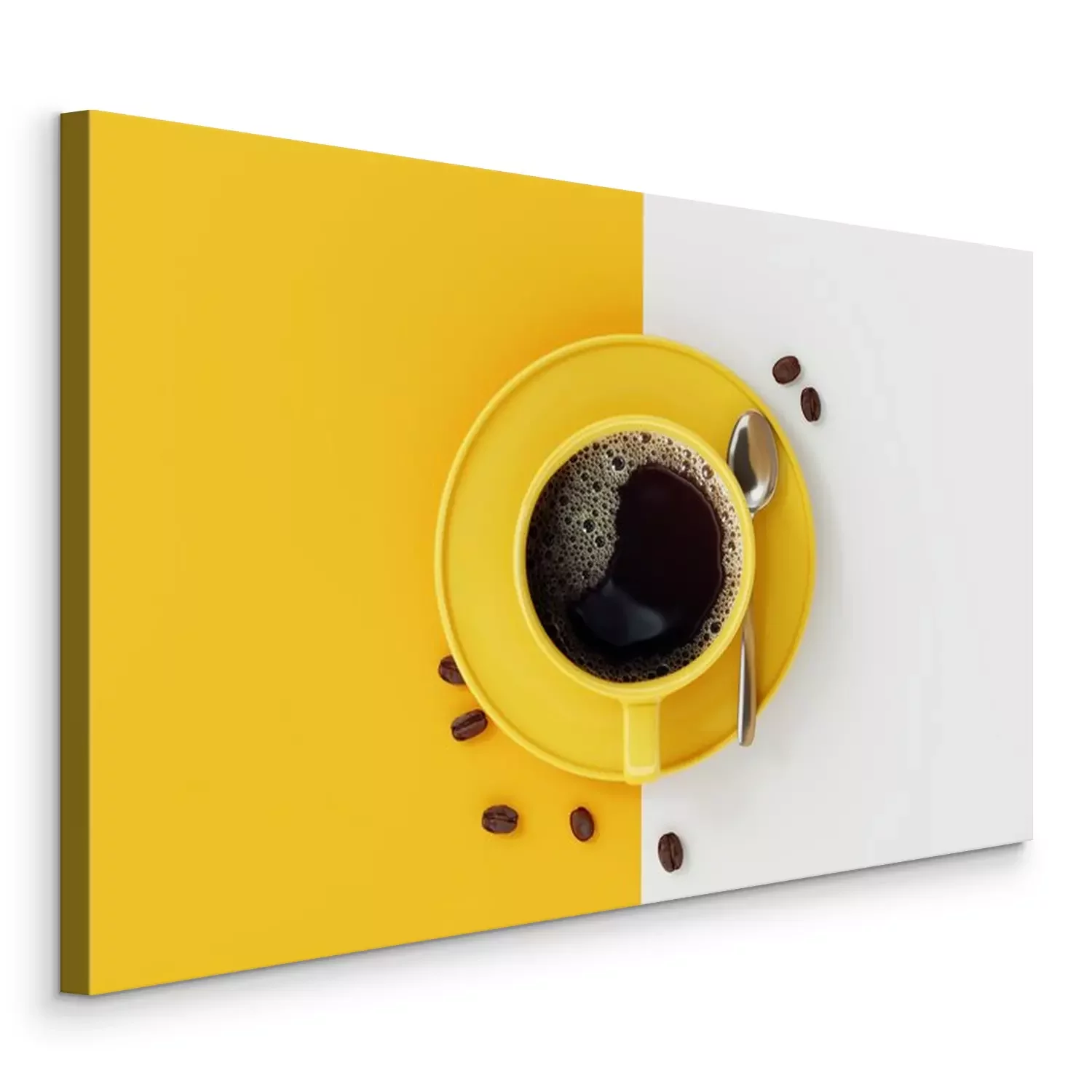 Canvas Hoogste mening van koffiekop op gele en witte achtergrond.