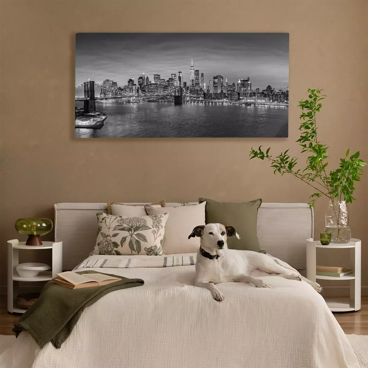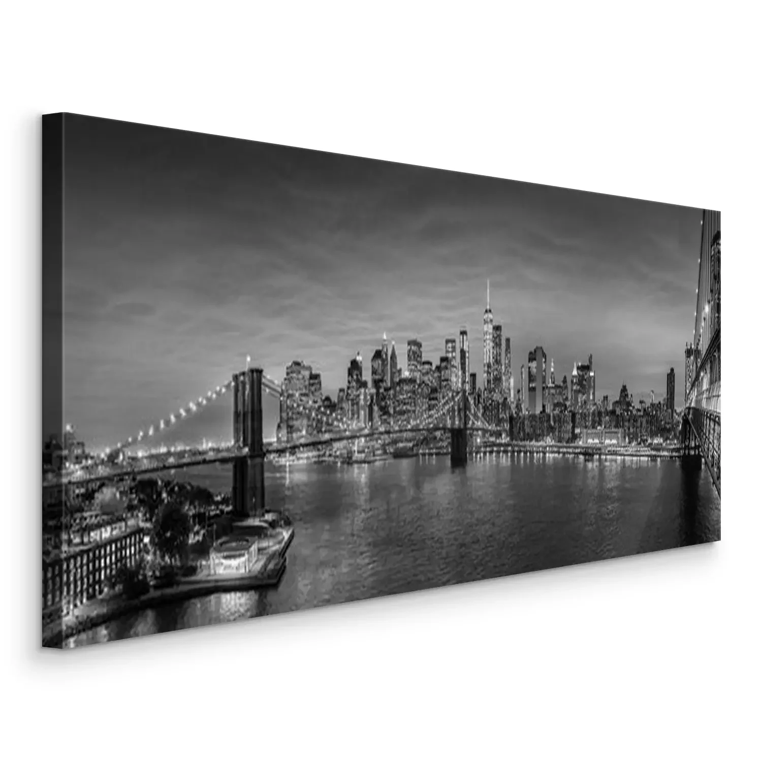 Panorama van New York City met de Brooklyn Bridge bij nacht
