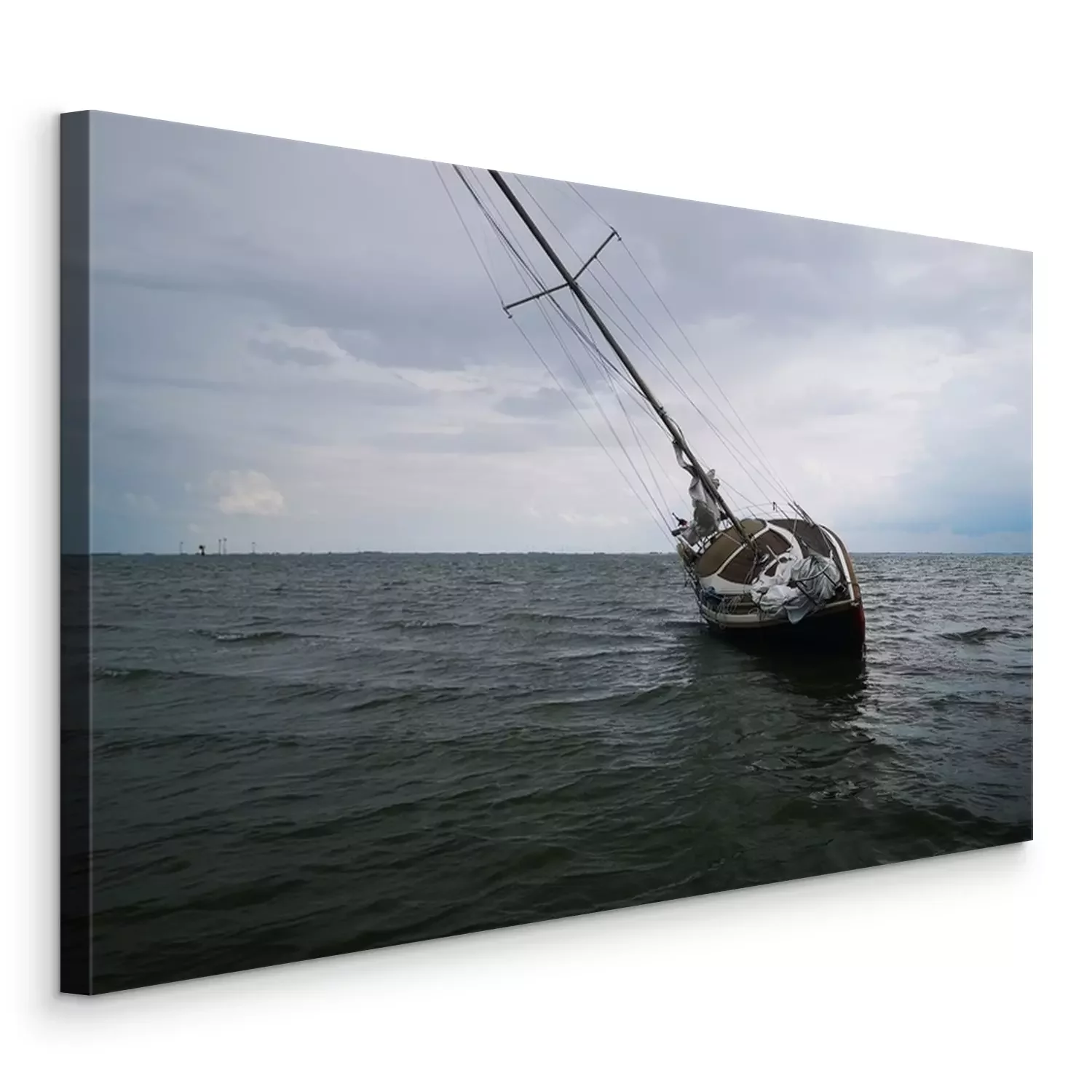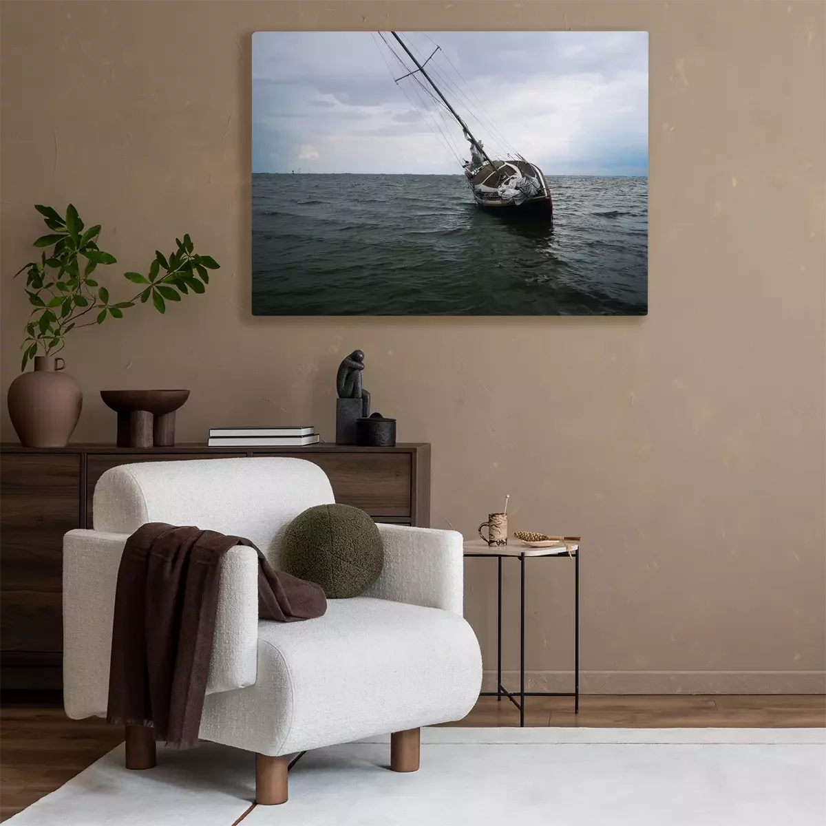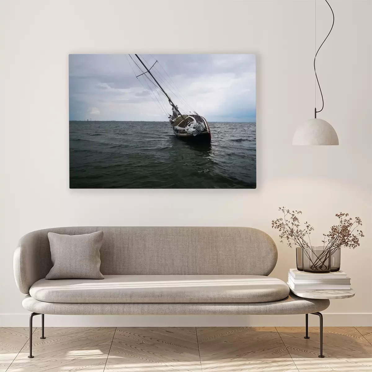 Canvas: Horizontal shot of a sailboat in a sandbank in the Wangerooge island located in northern Germany