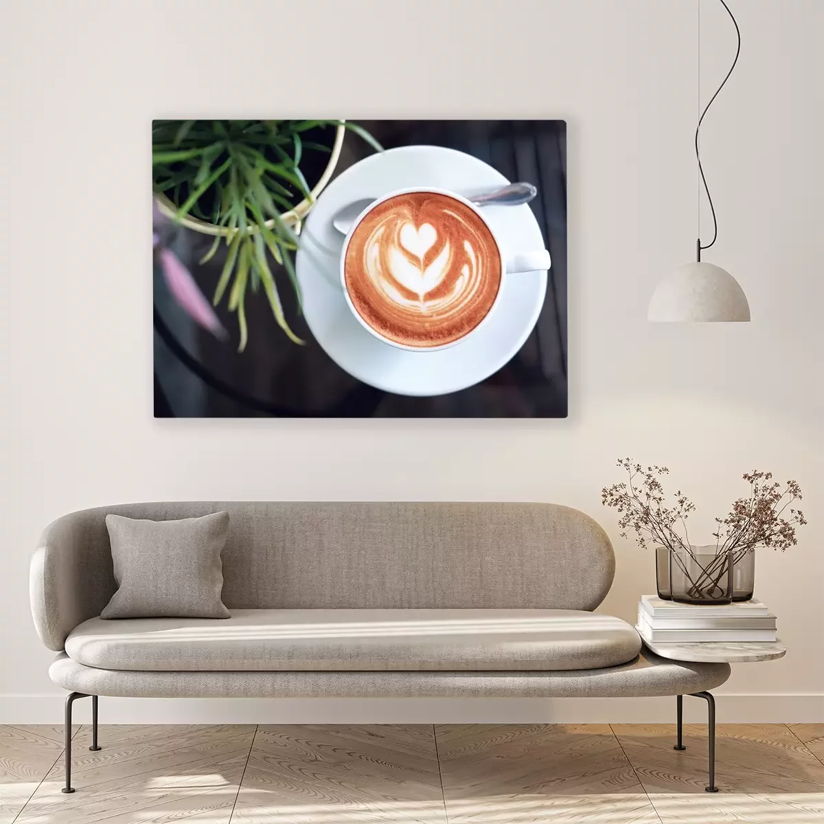 De print wordt aangebracht op hoogwaardig canvas dat op een schildersweefgetouw (spieraam) wordt gespannen. Omdat de print de zijranden bedekt, hoeft het ontwerp niet met een extra kader te worden omlijst. Wij raden ook composities aan die uit meerdere foto's bestaan en zo een coherente compositie vormen.
