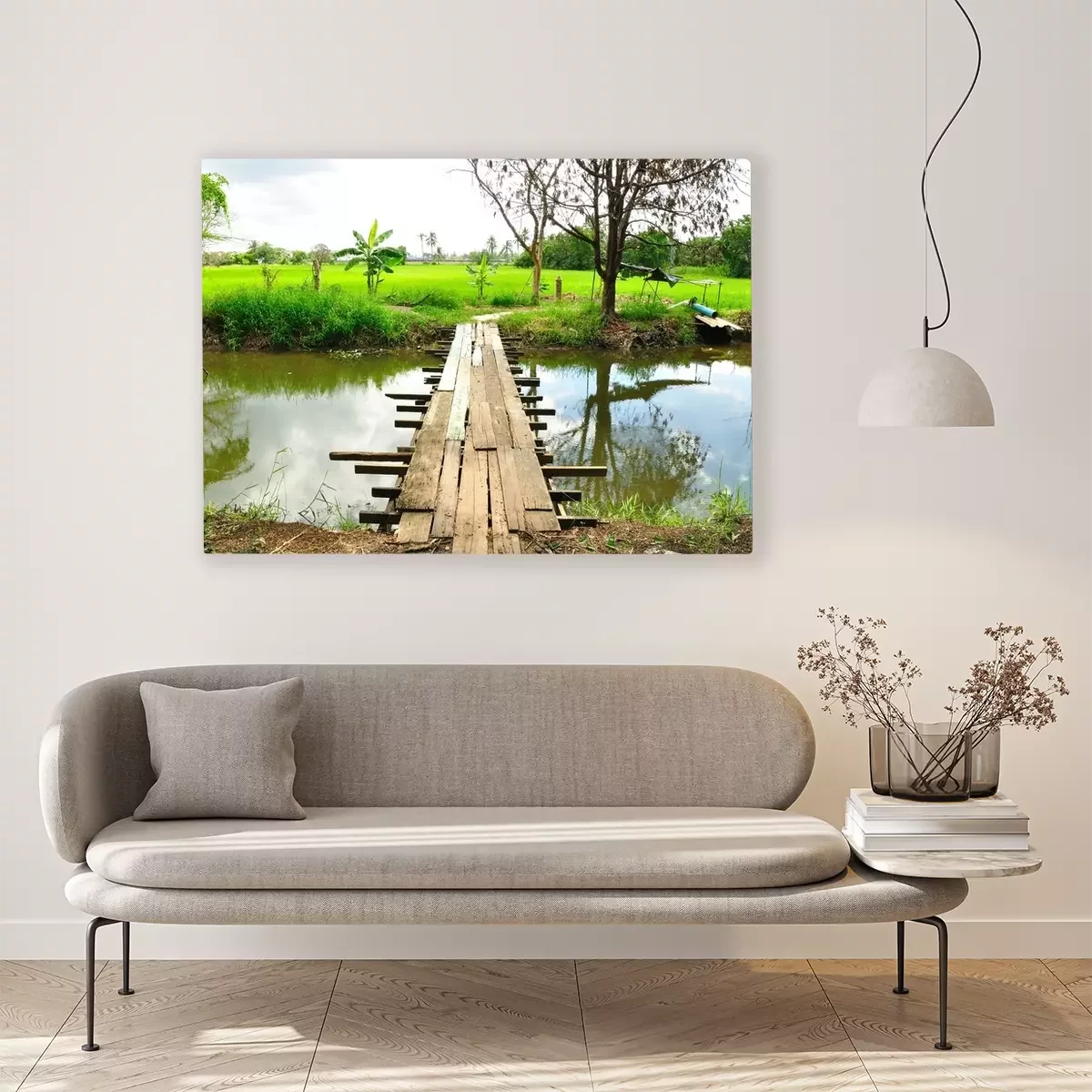 De print wordt aangebracht op hoogwaardig canvas dat op een schildersweefgetouw (spieraam) wordt gespannen. Omdat de print de zijranden bedekt, hoeft het ontwerp niet met een extra kader te worden omlijst. Wij raden ook composities aan die uit meerdere foto's bestaan en zo een coherente compositie vormen.