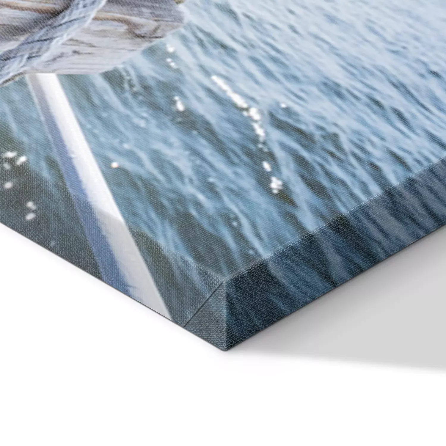 De print wordt aangebracht op hoogwaardig canvas dat op een schildersweefgetouw (spieraam) wordt gespannen. Omdat de print de zijranden bedekt, hoeft het ontwerp niet met een extra kader te worden omlijst. Wij raden ook composities aan die uit meerdere foto's bestaan en zo een coherente compositie vormen.