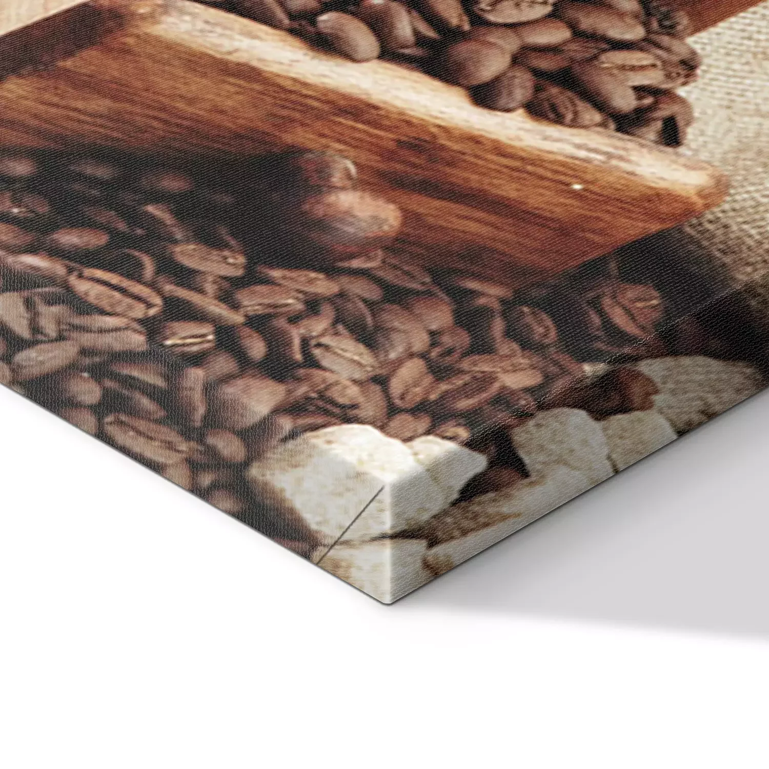 De print wordt aangebracht op hoogwaardig canvas dat op een schildersweefgetouw (spieraam) wordt gespannen. Omdat de print de zijranden bedekt, hoeft het ontwerp niet met een extra kader te worden omlijst. Wij raden ook composities aan die uit meerdere foto's bestaan en zo een coherente compositie vormen.