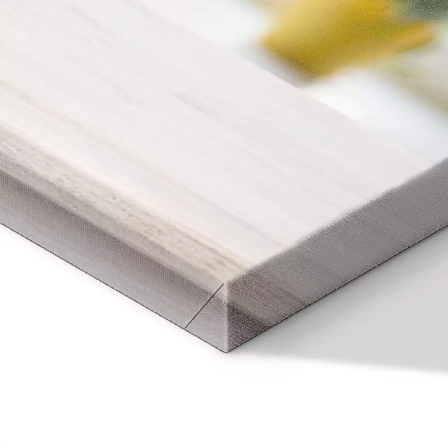 De print wordt aangebracht op hoogwaardig canvas dat op een schildersweefgetouw (spieraam) wordt gespannen. Omdat de print de zijranden bedekt, hoeft het ontwerp niet met een extra kader te worden omlijst. Wij raden ook composities aan die uit meerdere foto's bestaan en zo een coherente compositie vormen.