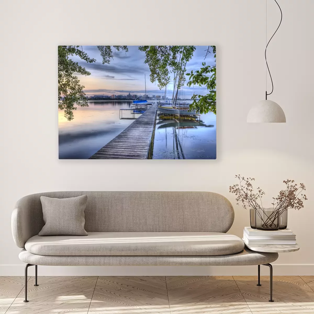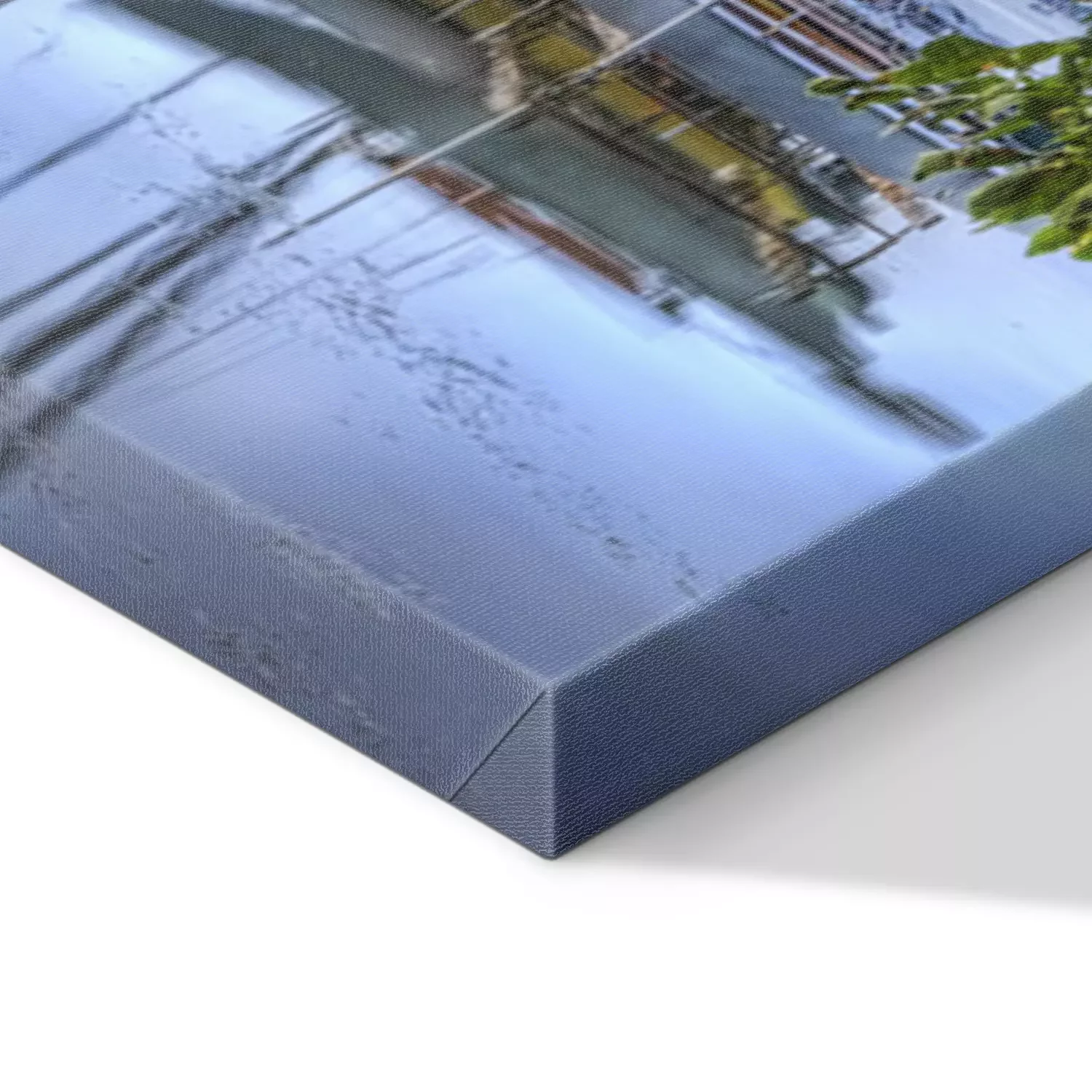 De print wordt aangebracht op hoogwaardig canvas dat op een schildersweefgetouw (spieraam) wordt gespannen. Omdat de print de zijranden bedekt, hoeft het ontwerp niet met een extra kader te worden omlijst. Wij raden ook composities aan die uit meerdere foto's bestaan en zo een coherente compositie vormen.