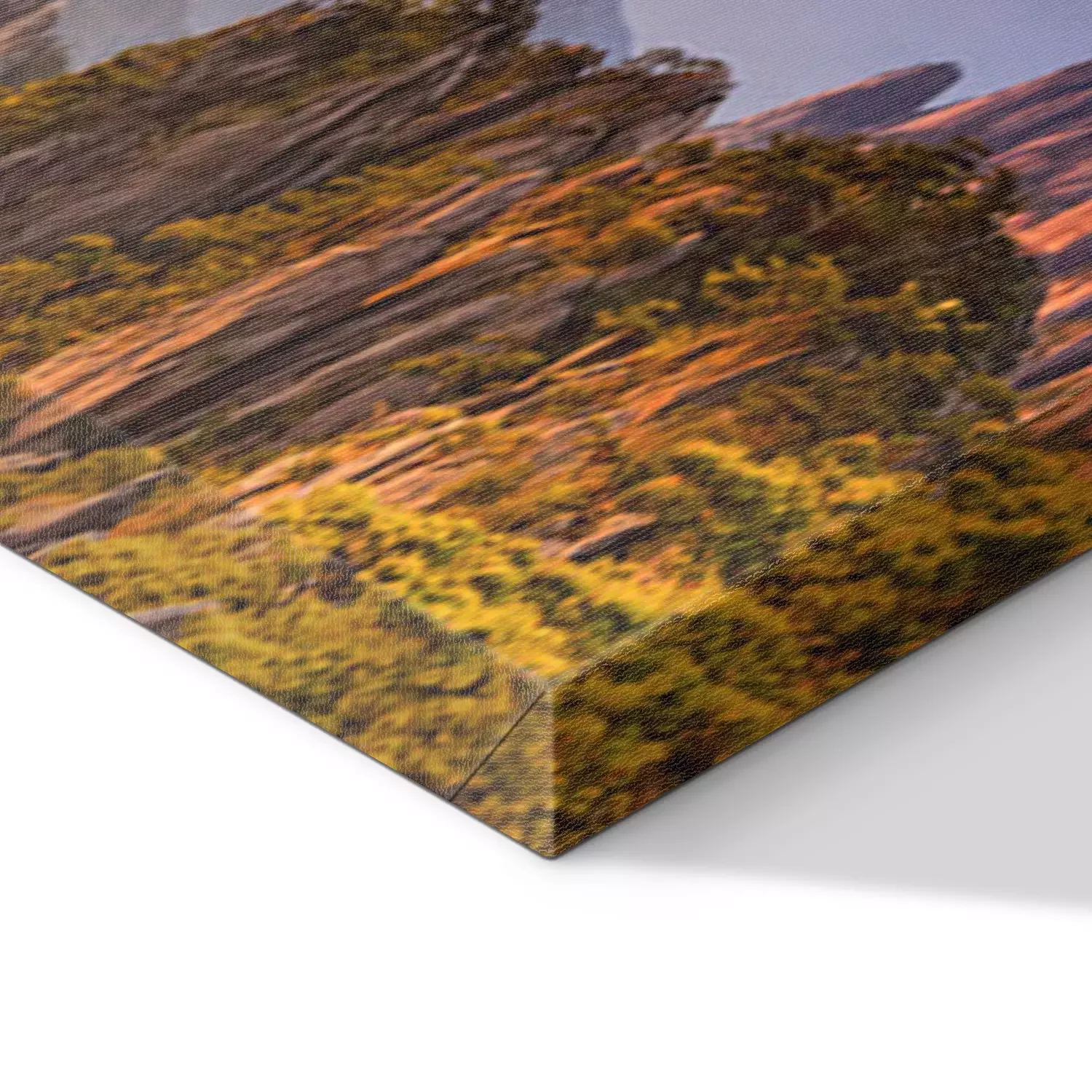 De print wordt aangebracht op hoogwaardig canvas dat op een schildersweefgetouw (spieraam) wordt gespannen. Omdat de print de zijranden bedekt, hoeft het ontwerp niet met een extra kader te worden omlijst. Wij raden ook composities aan die uit meerdere foto's bestaan en zo een coherente compositie vormen.
