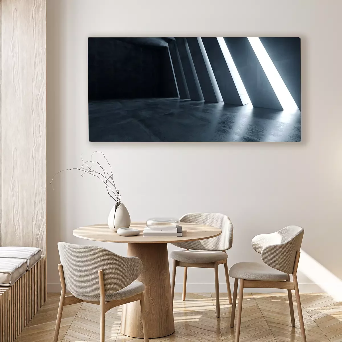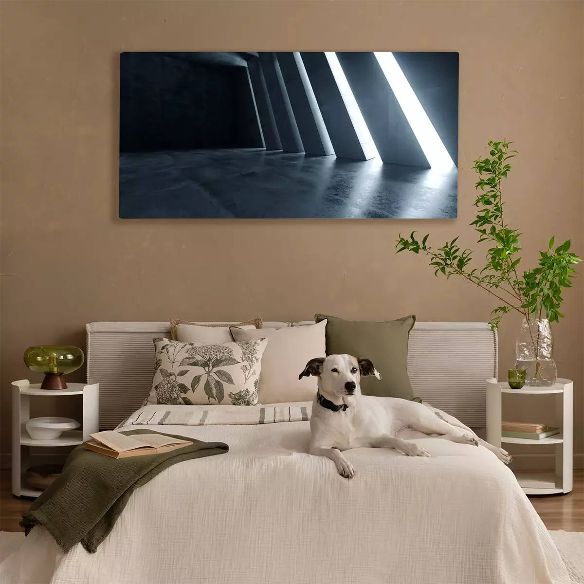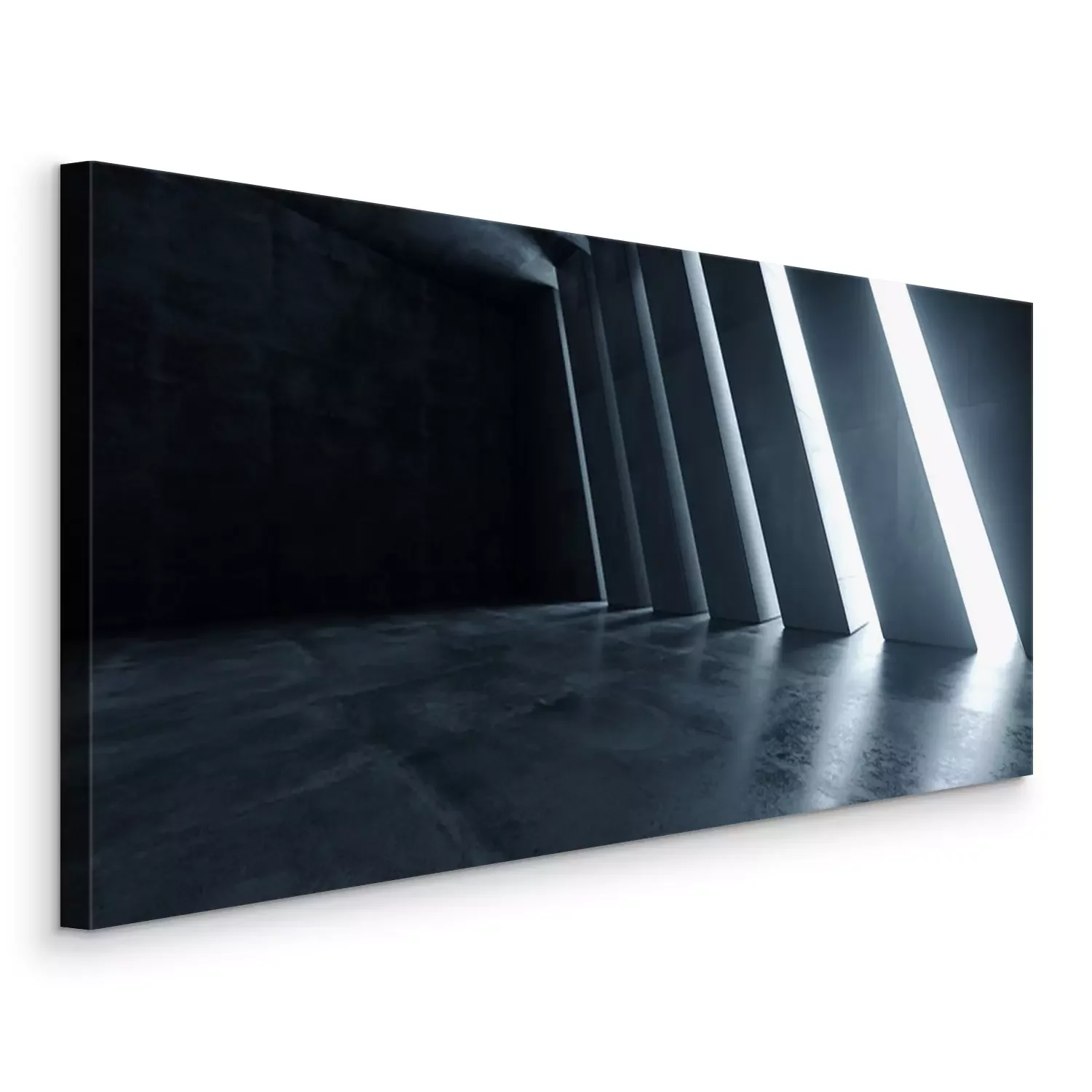Canvas Huge Big Dark Hall Garage Tunnel Corridor Car Empty Studio Background White Windows Light Glow Cement Asphalt Concrete Grunge Dark Tall 3D Rendering