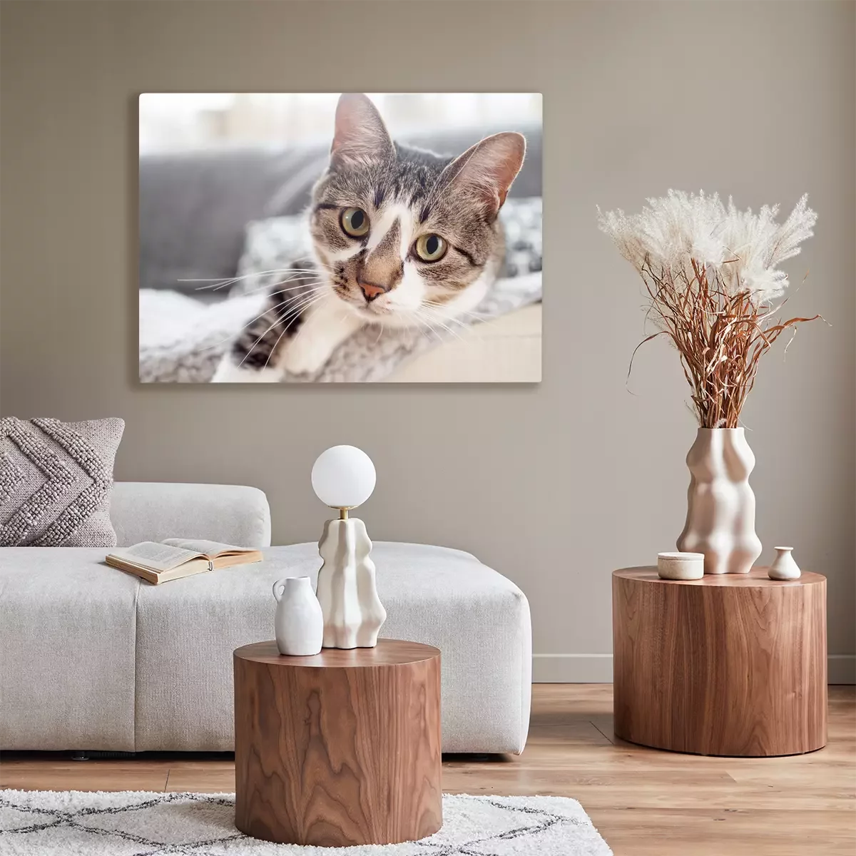 De print wordt aangebracht op hoogwaardig canvas dat op een schildersweefgetouw (spieraam) wordt gespannen. Omdat de print de zijranden bedekt, hoeft het ontwerp niet met een extra kader te worden omlijst. Wij raden ook composities aan die uit meerdere foto's bestaan en zo een coherente compositie vormen.