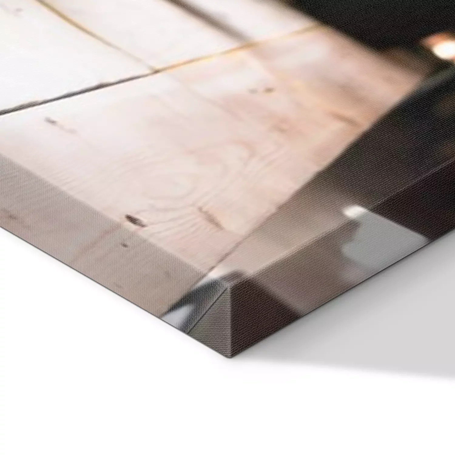 De print wordt aangebracht op hoogwaardig canvas dat op een schildersweefgetouw (spieraam) wordt gespannen. Omdat de print de zijranden bedekt, hoeft het ontwerp niet met een extra kader te worden omlijst. Wij raden ook composities aan die uit meerdere foto's bestaan en zo een coherente compositie vormen.