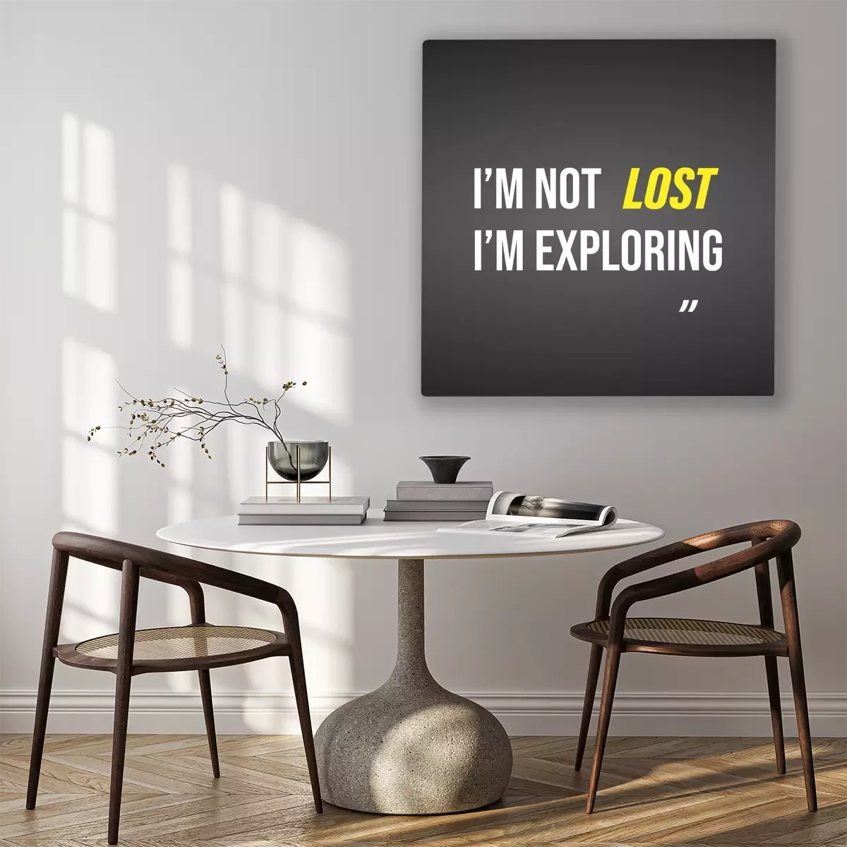 Canvas: i'm not lost i'm exploring. Life quote with modern background vector