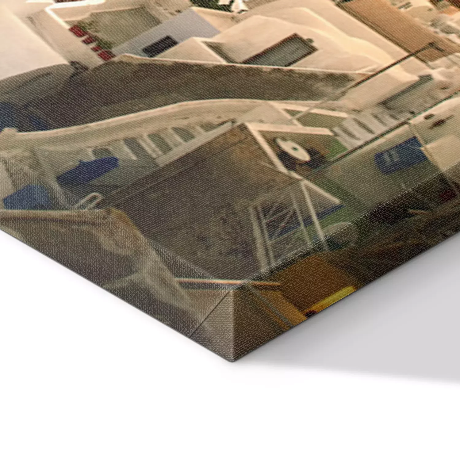 De print wordt aangebracht op hoogwaardig canvas dat op een schildersweefgetouw (spieraam) wordt gespannen. Omdat de print de zijranden bedekt, hoeft het ontwerp niet met een extra kader te worden omlijst. Wij raden ook composities aan die uit meerdere foto's bestaan en zo een coherente compositie vormen.