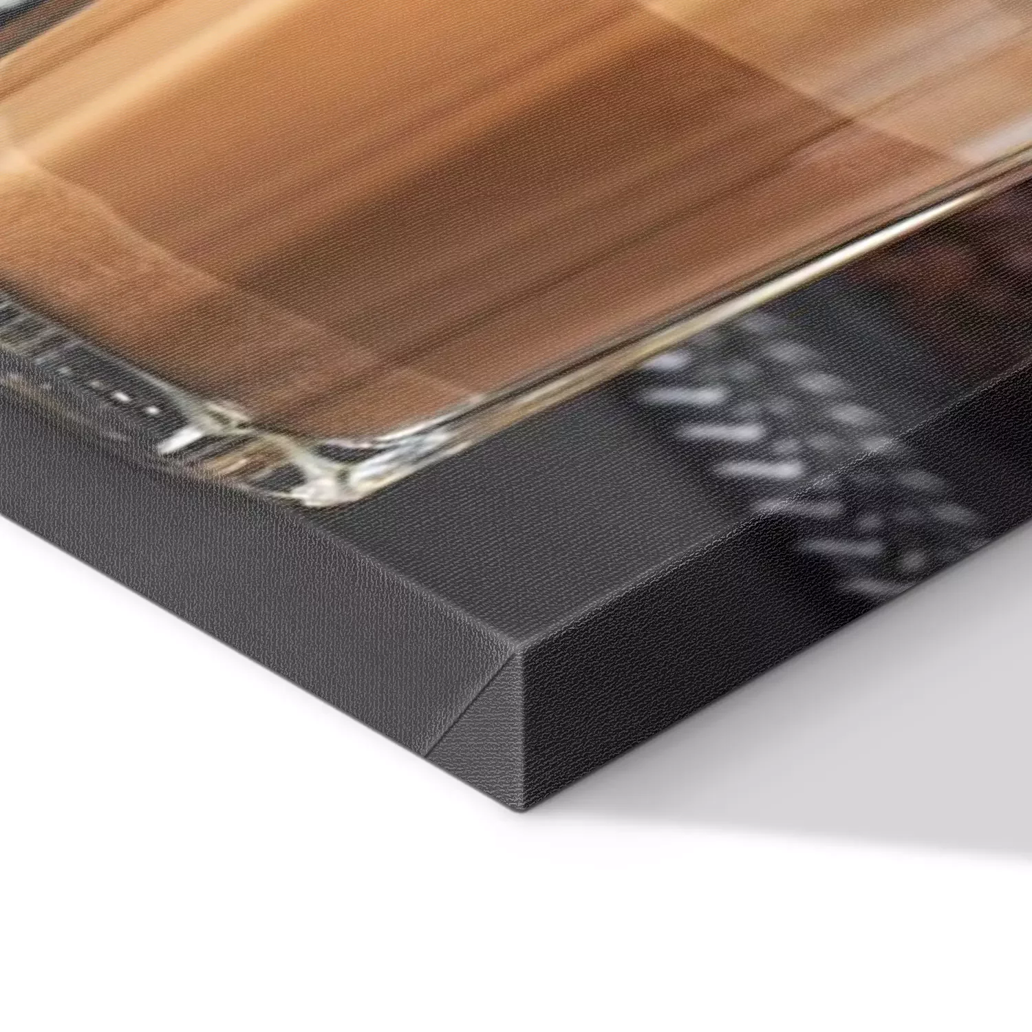 De print wordt aangebracht op hoogwaardig canvas dat op een schildersweefgetouw (spieraam) wordt gespannen. Omdat de print de zijranden bedekt, hoeft het ontwerp niet met een extra kader te worden omlijst. Wij raden ook composities aan die uit meerdere foto's bestaan en zo een coherente compositie vormen.