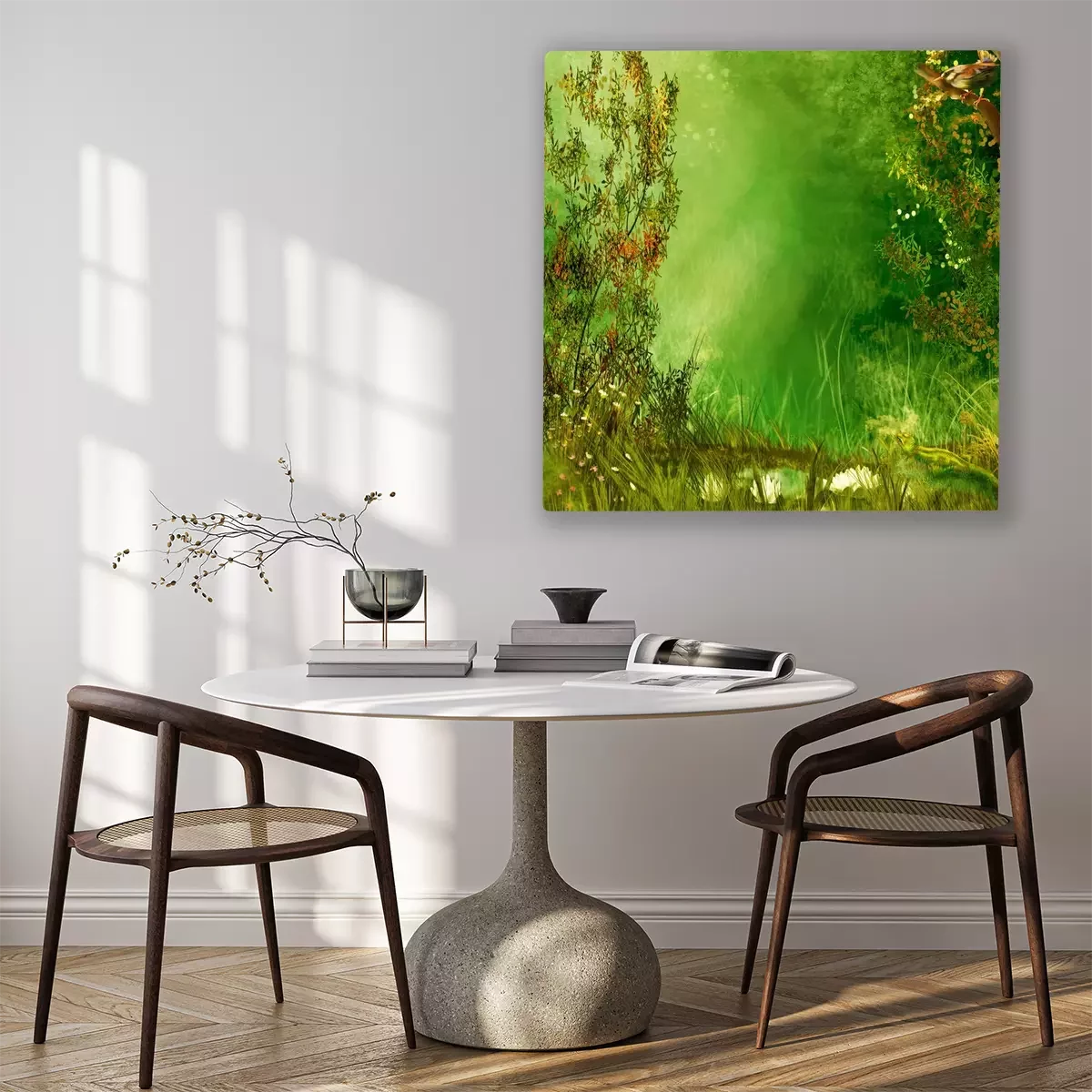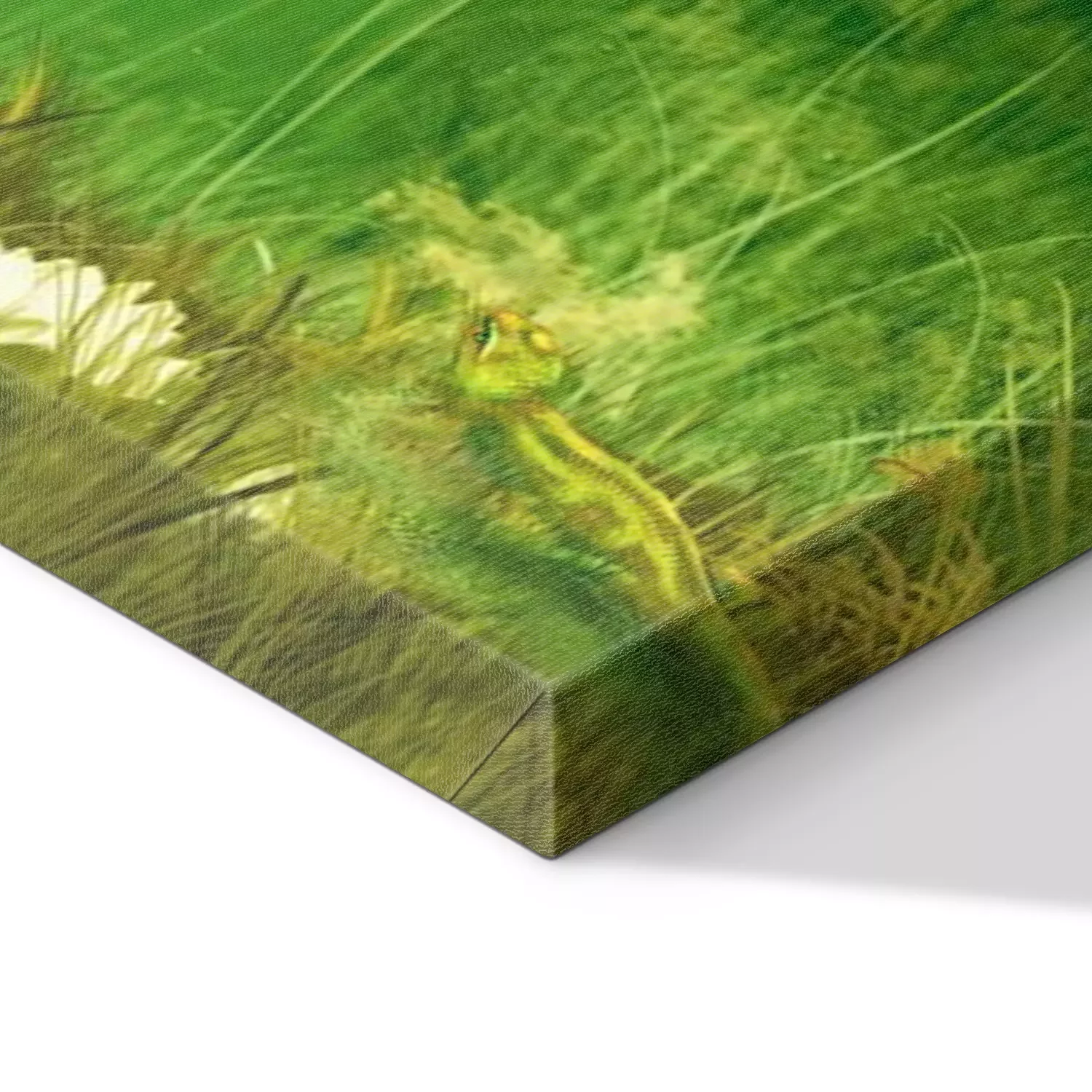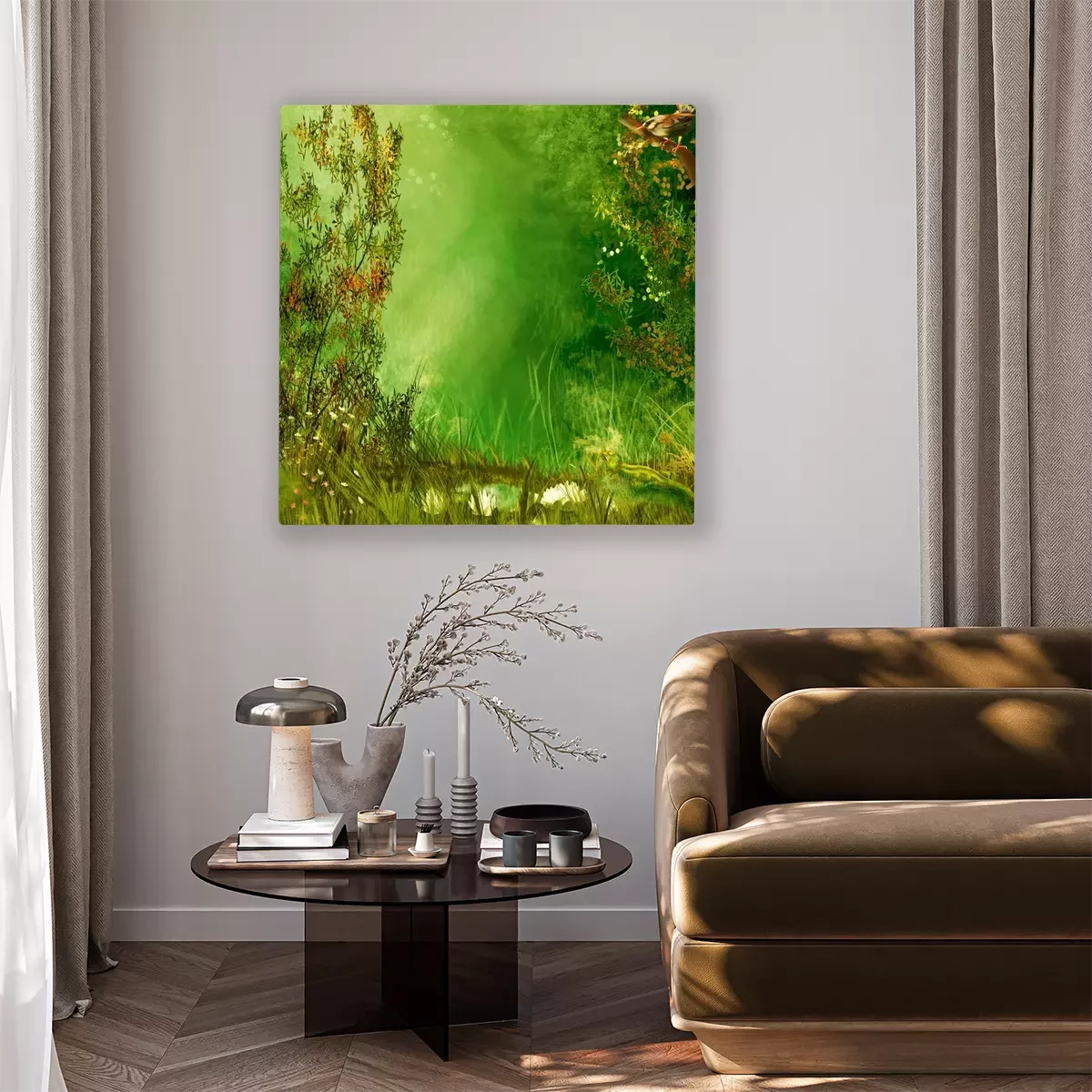De print wordt aangebracht op hoogwaardig canvas dat op een schildersweefgetouw (spieraam) wordt gespannen. Omdat de print de zijranden bedekt, hoeft het ontwerp niet met een extra kader te worden omlijst. Wij raden ook composities aan die uit meerdere foto's bestaan en zo een coherente compositie vormen.