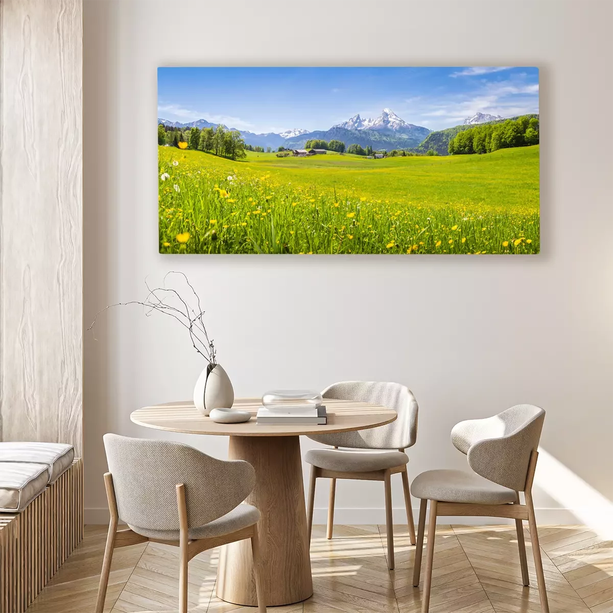 Canvas Idyllisch landschap in de Alpen met bloeiende weiden in de zomer