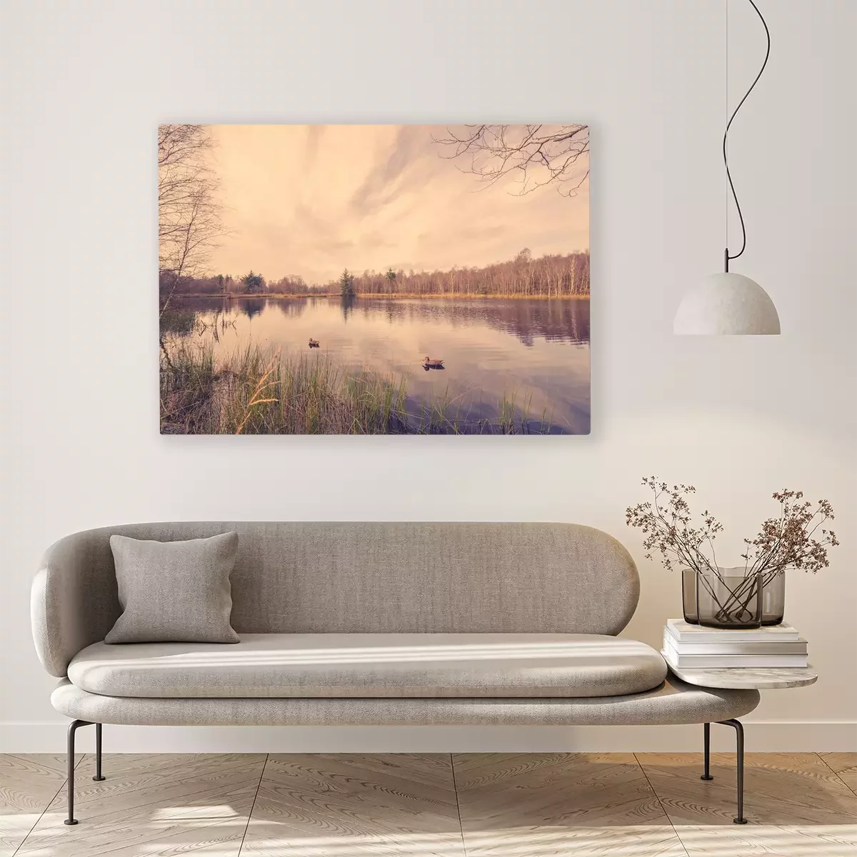 Canvas: Idyllisch landschap met lokmiddel eenden