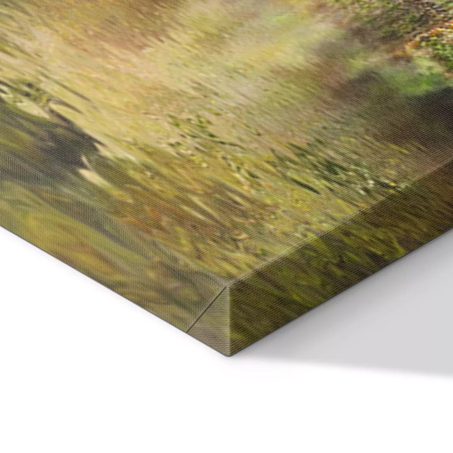 De print wordt aangebracht op hoogwaardig canvas dat op een schildersweefgetouw (spieraam) wordt gespannen. Omdat de print de zijranden bedekt, hoeft het ontwerp niet met een extra kader te worden omlijst. Wij raden ook composities aan die uit meerdere foto's bestaan en zo een coherente compositie vormen.