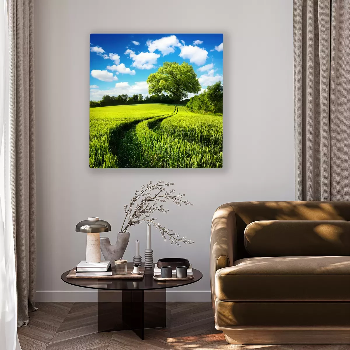 De print wordt aangebracht op hoogwaardig canvas dat op een schildersweefgetouw (spieraam) wordt gespannen. Omdat de print de zijranden bedekt, hoeft het ontwerp niet met een extra kader te worden omlijst. Wij raden ook composities aan die uit meerdere foto's bestaan en zo een coherente compositie vormen.