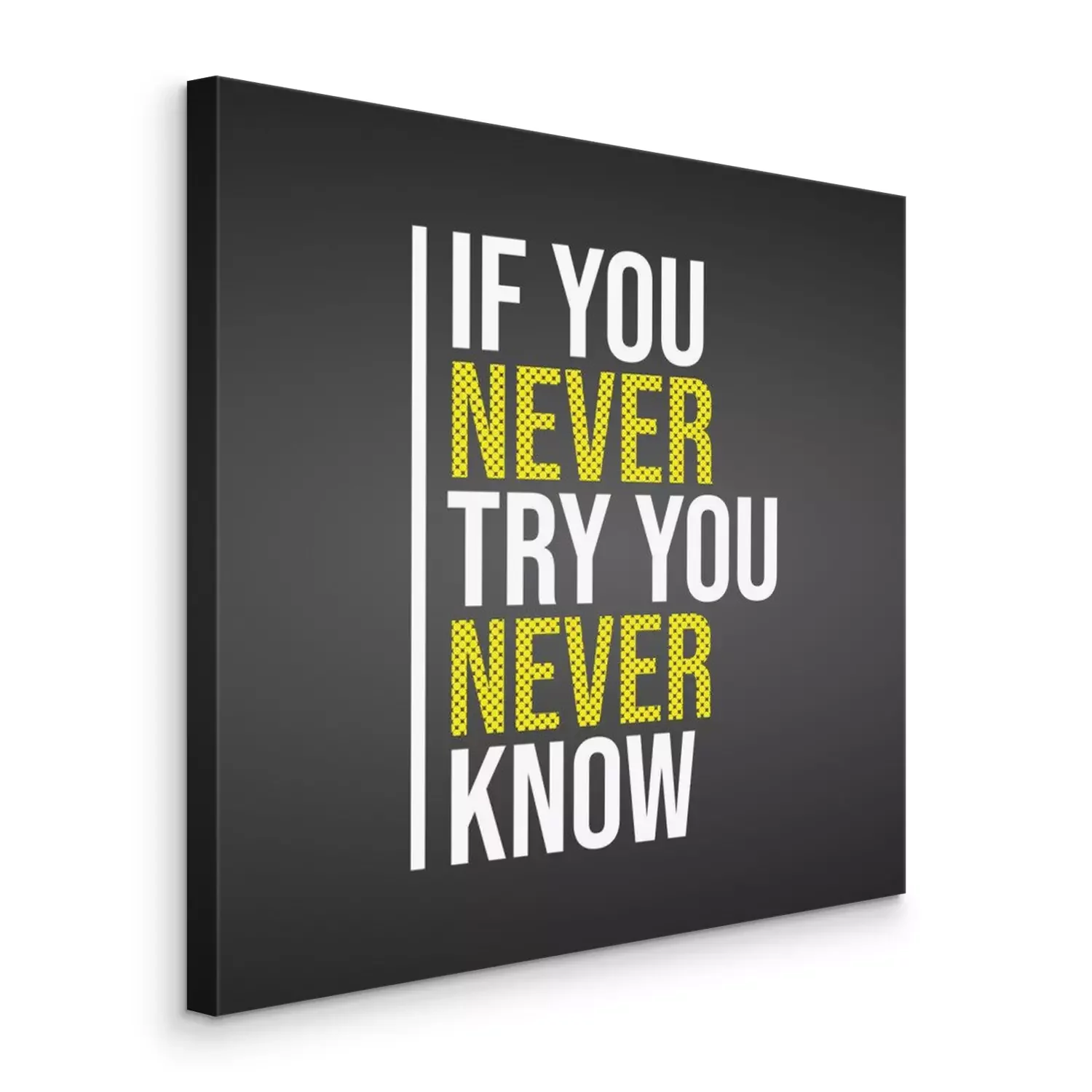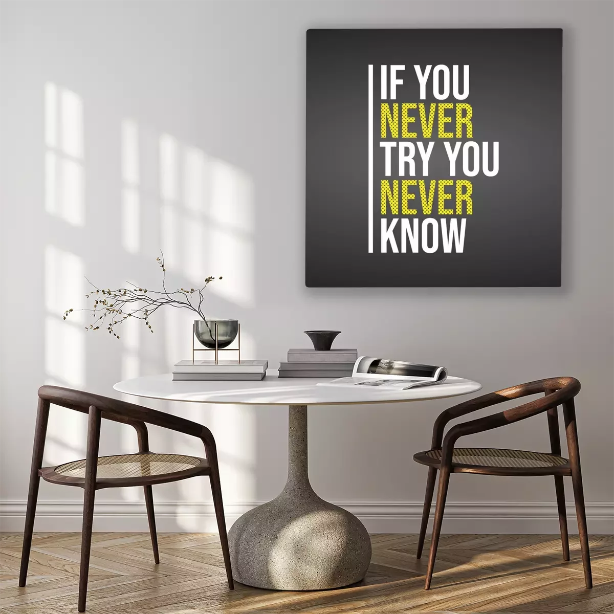 Canvas: if you never try you never know. Motivation quote with modern background vector