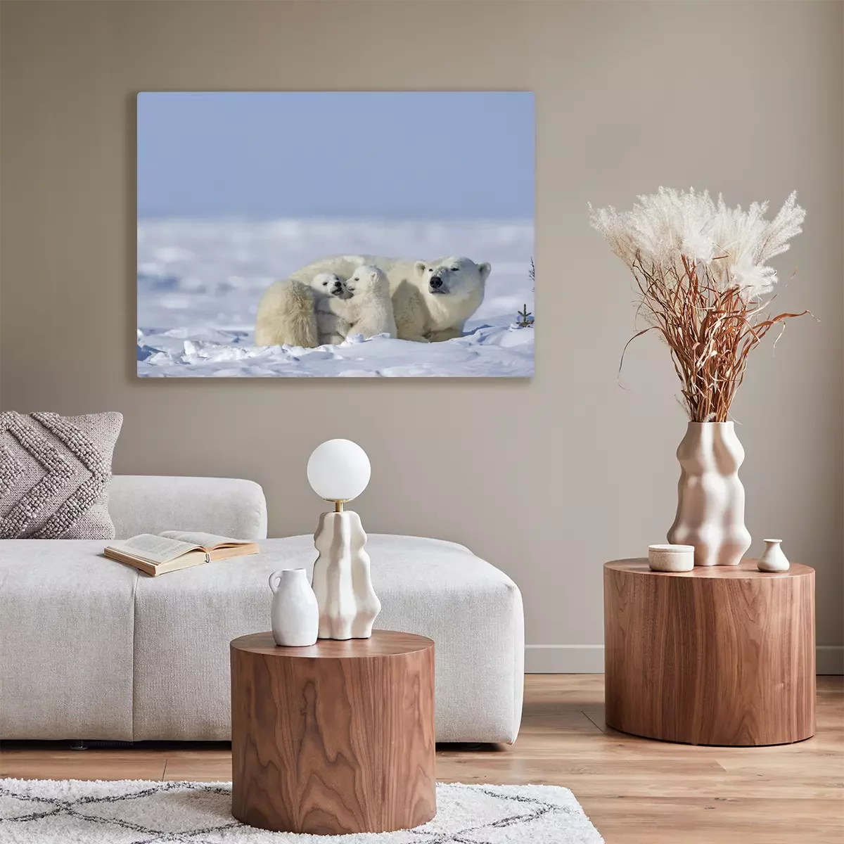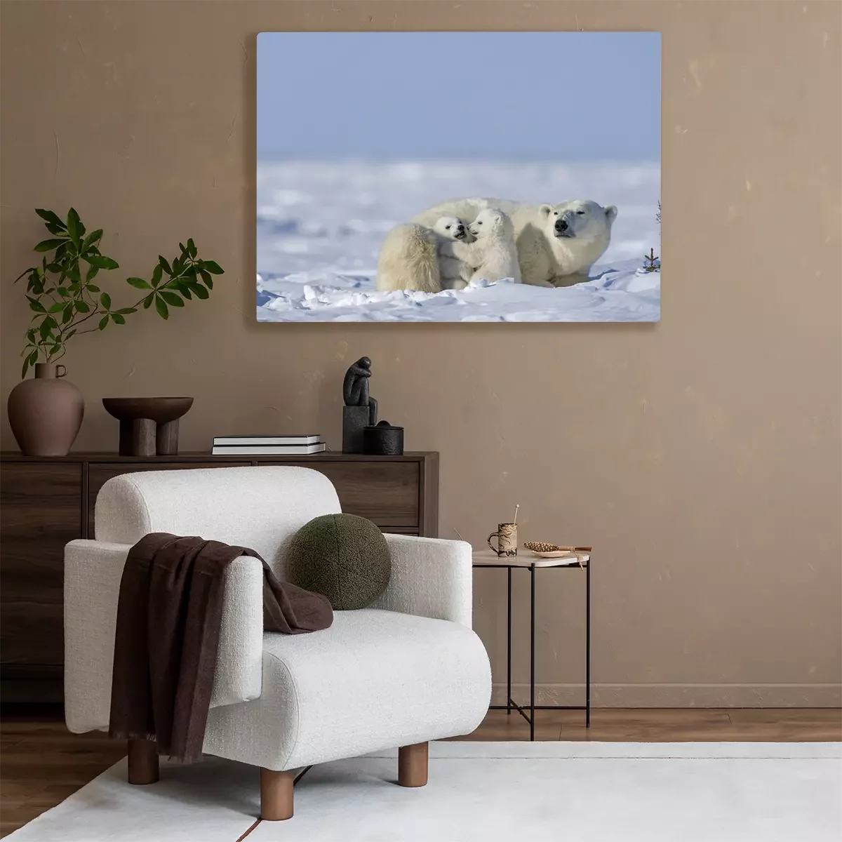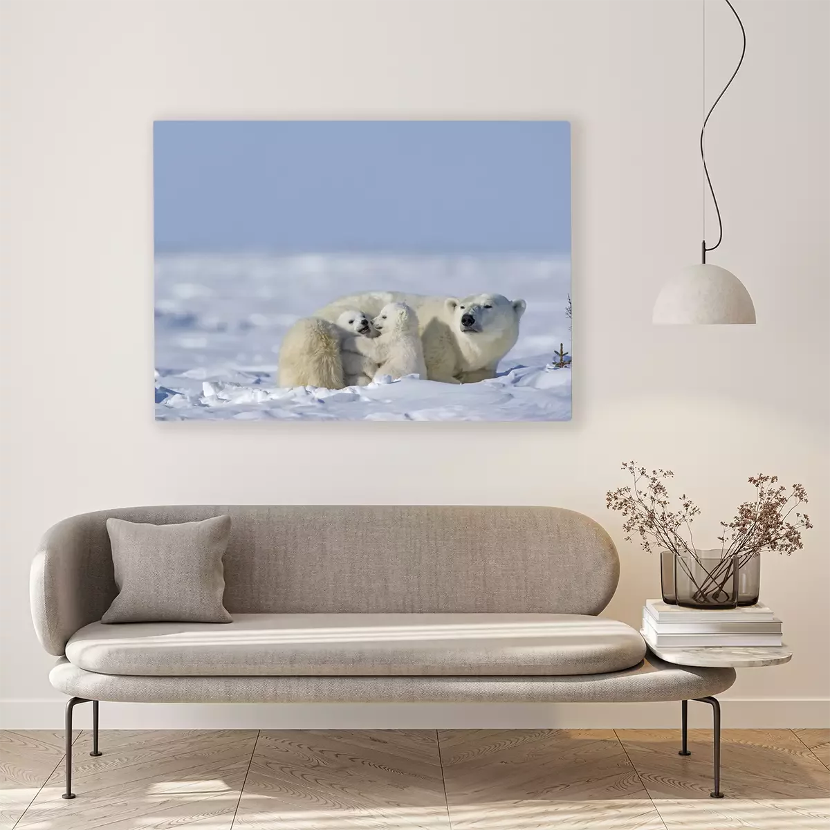 De print wordt aangebracht op hoogwaardig canvas dat op een schildersweefgetouw (spieraam) wordt gespannen. Omdat de print de zijranden bedekt, hoeft het ontwerp niet met een extra kader te worden omlijst. Wij raden ook composities aan die uit meerdere foto's bestaan en zo een coherente compositie vormen.