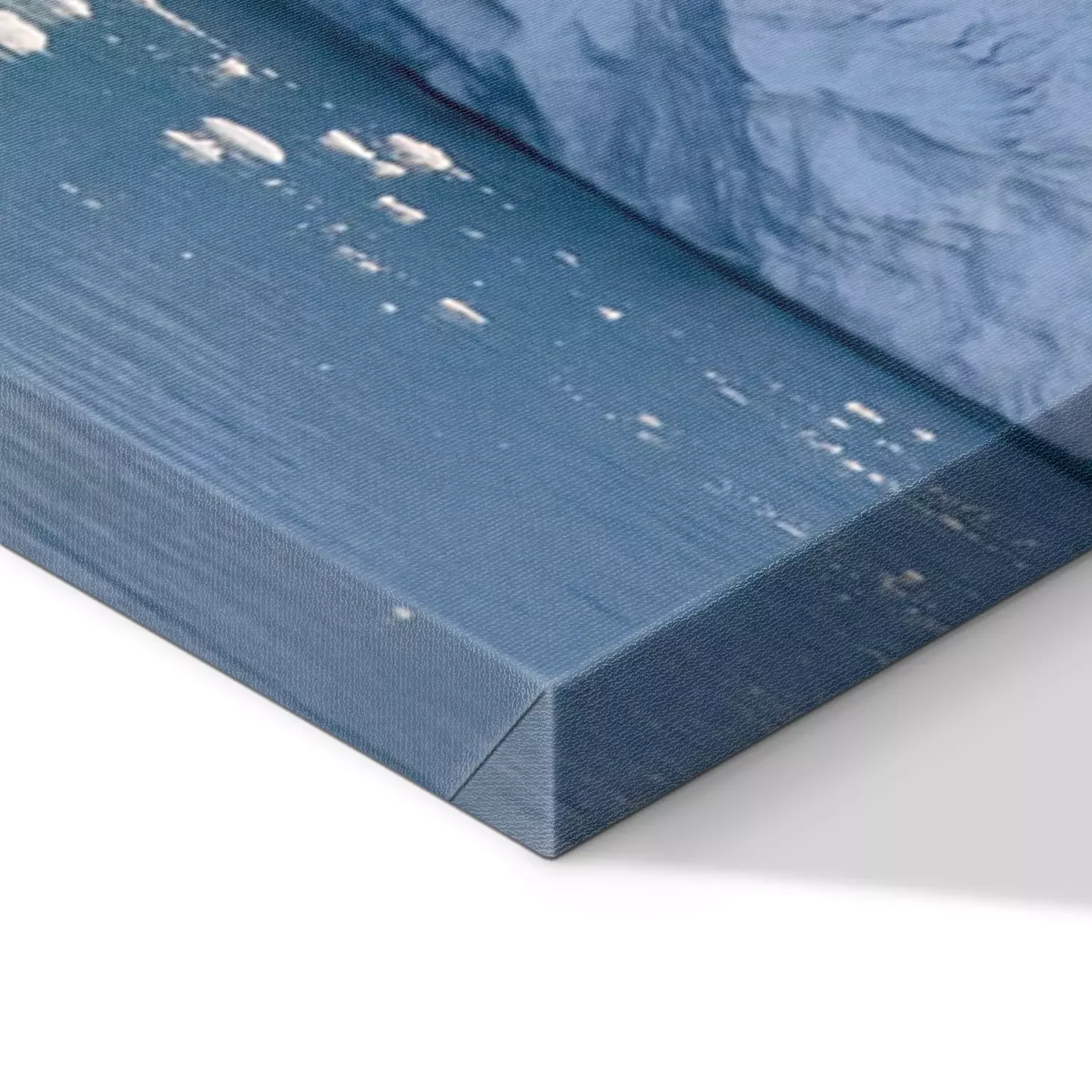 De print wordt aangebracht op hoogwaardig canvas dat op een schildersweefgetouw (spieraam) wordt gespannen. Omdat de print de zijranden bedekt, hoeft het ontwerp niet met een extra kader te worden omlijst. Wij raden ook composities aan die uit meerdere foto's bestaan en zo een coherente compositie vormen.