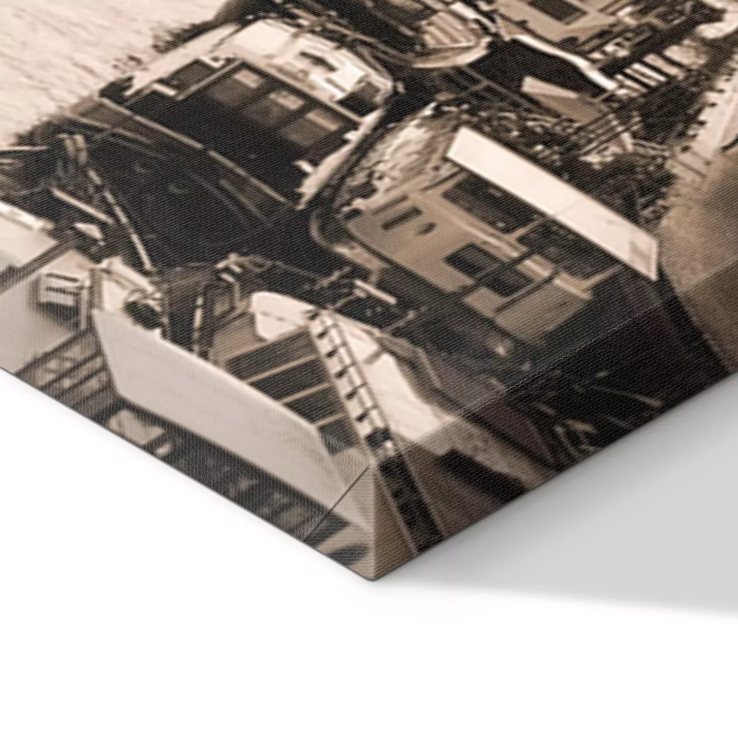 De print wordt aangebracht op hoogwaardig canvas dat op een schildersweefgetouw (spieraam) wordt gespannen. Omdat de print de zijranden bedekt, hoeft het ontwerp niet met een extra kader te worden omlijst. Wij raden ook composities aan die uit meerdere foto's bestaan en zo een coherente compositie vormen.