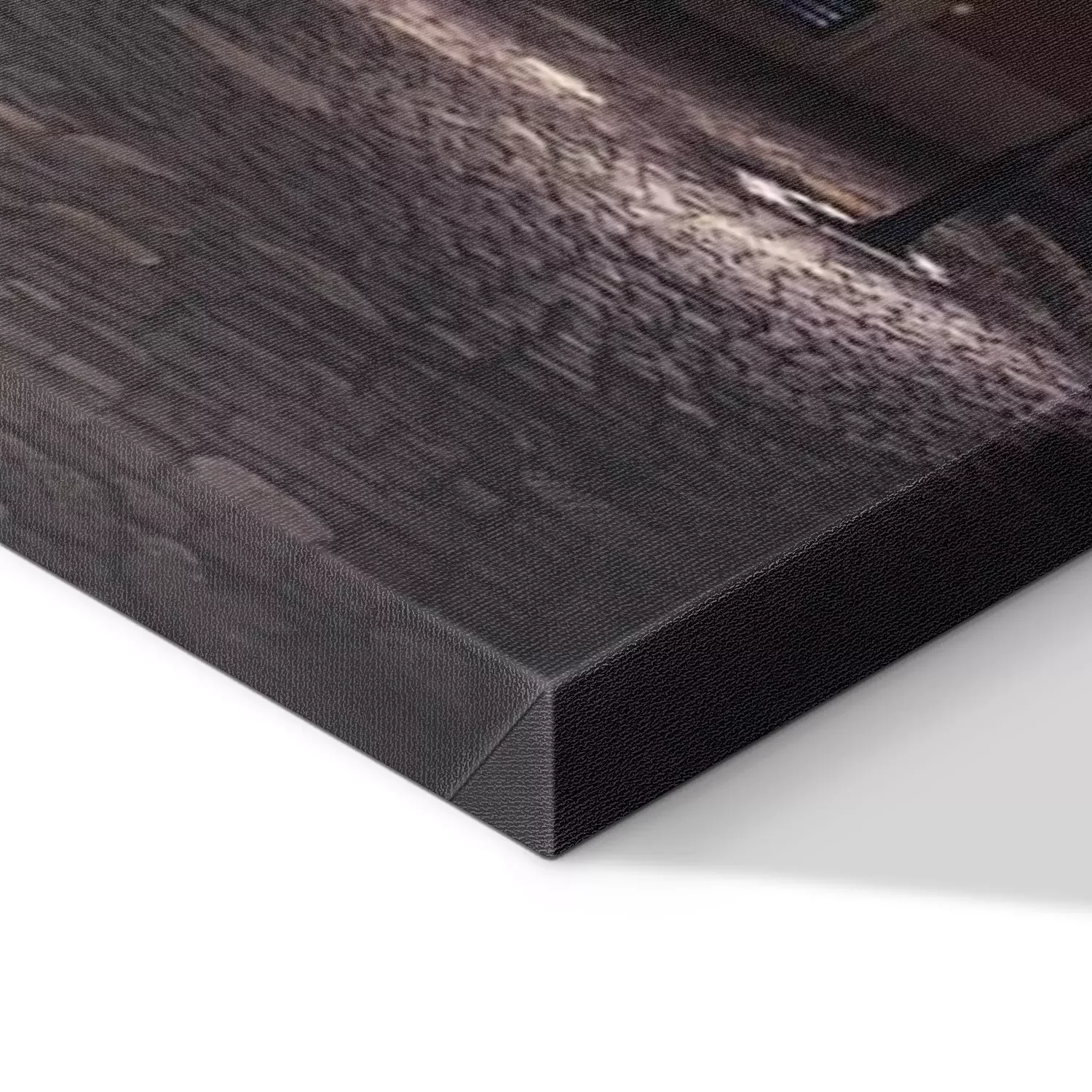 De print wordt aangebracht op hoogwaardig canvas dat op een schildersweefgetouw (spieraam) wordt gespannen. Omdat de print de zijranden bedekt, hoeft het ontwerp niet met een extra kader te worden omlijst. Wij raden ook composities aan die uit meerdere foto's bestaan en zo een coherente compositie vormen.