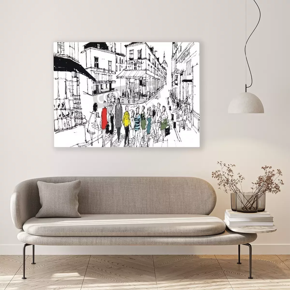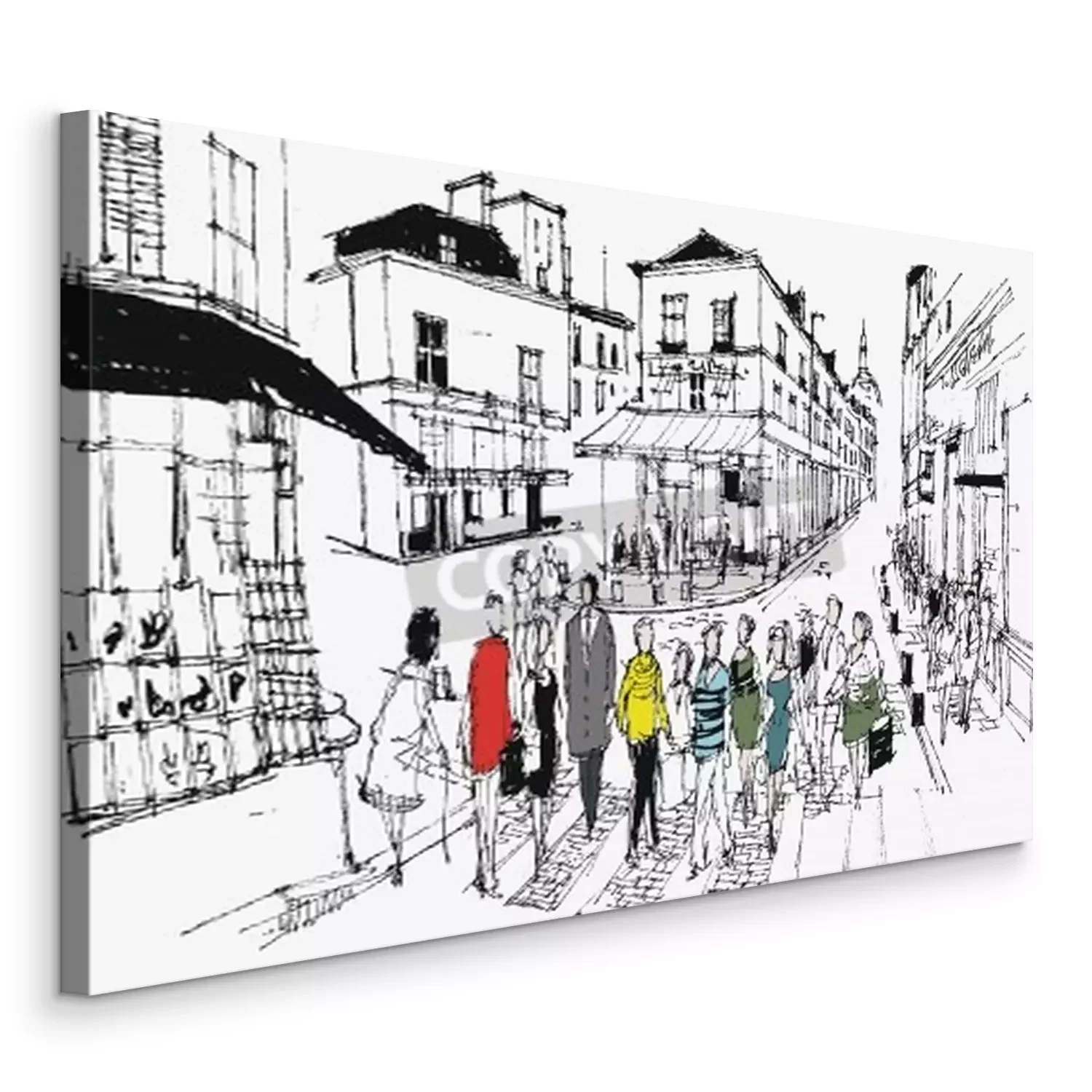 Canvas Illustratie van Montmartre cafe scene, Parijs Frankrijk